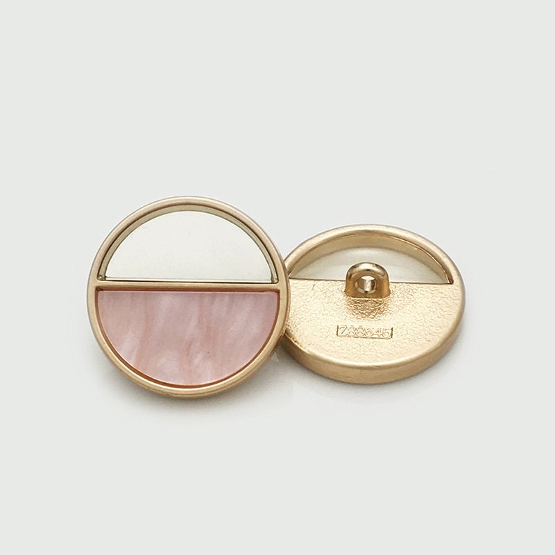 Runde pink og hvide dobbelt-tone guld metal skaft knapper 12 stk