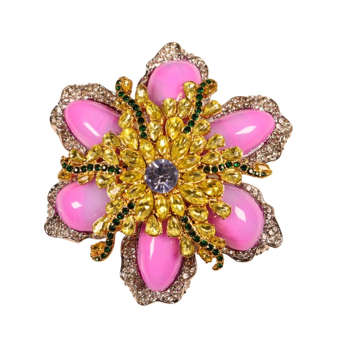 Fransk vintage pink rhinsten glas broche med elektropletteret guld