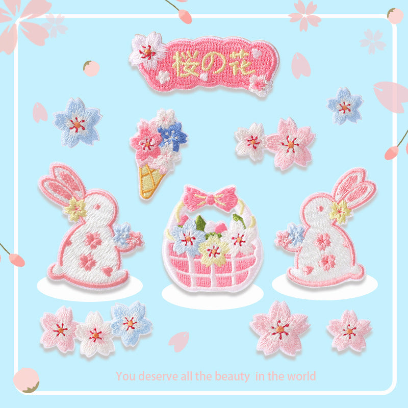 Selvklæbende lyserøde kanin Sakura broderede patches 10 stk.