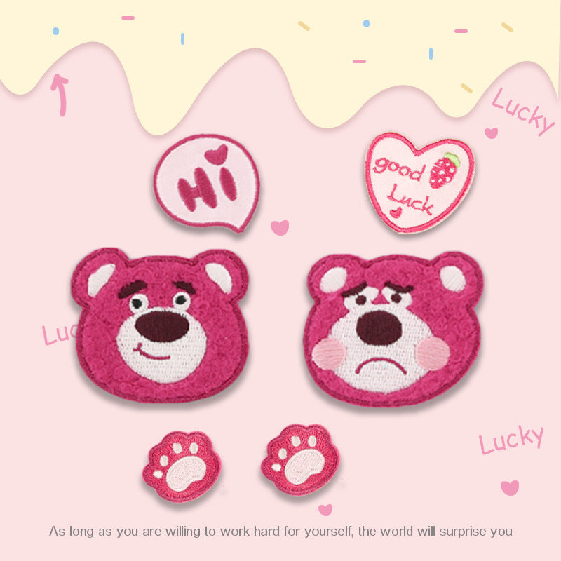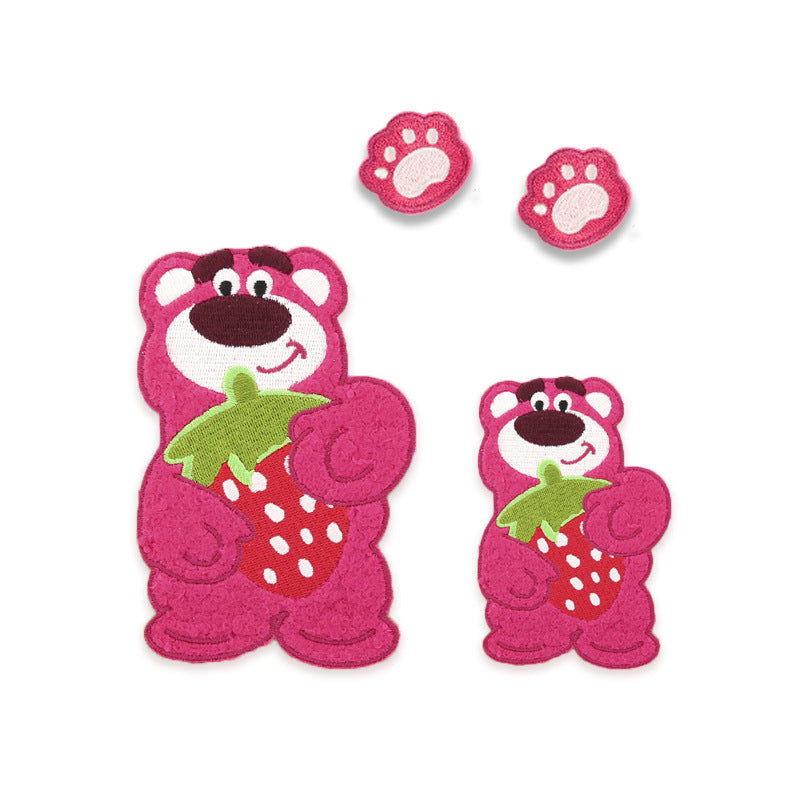 Pink Jordbær Bjørnehoved & Pote Selvklæbende Broderede Mærker 5 Pakke