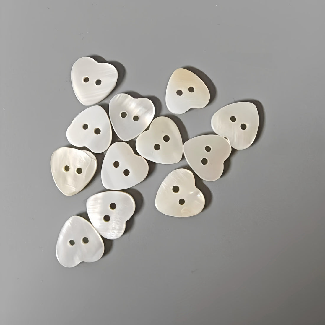 10/18/22mm Rene hvide hjerteformede knapper af skaller 30 pakke