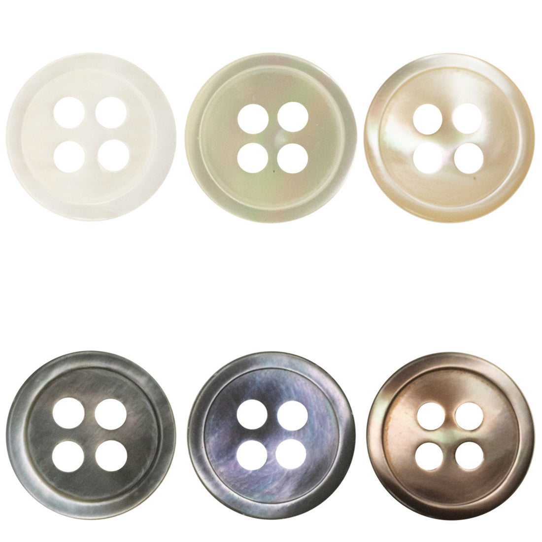 Rund enkelt-hul naturlig perlemorsknap, 10 stk.