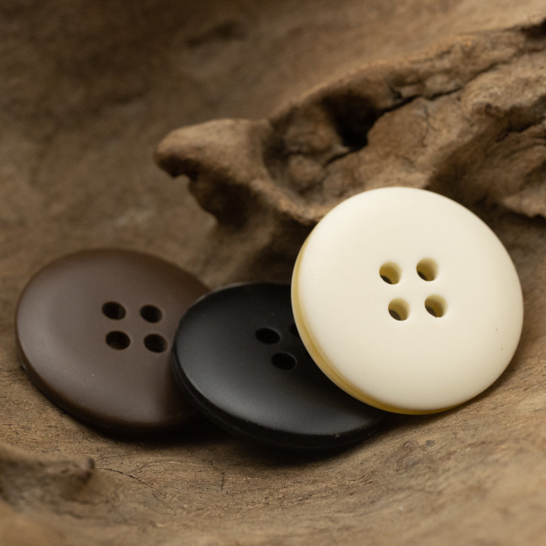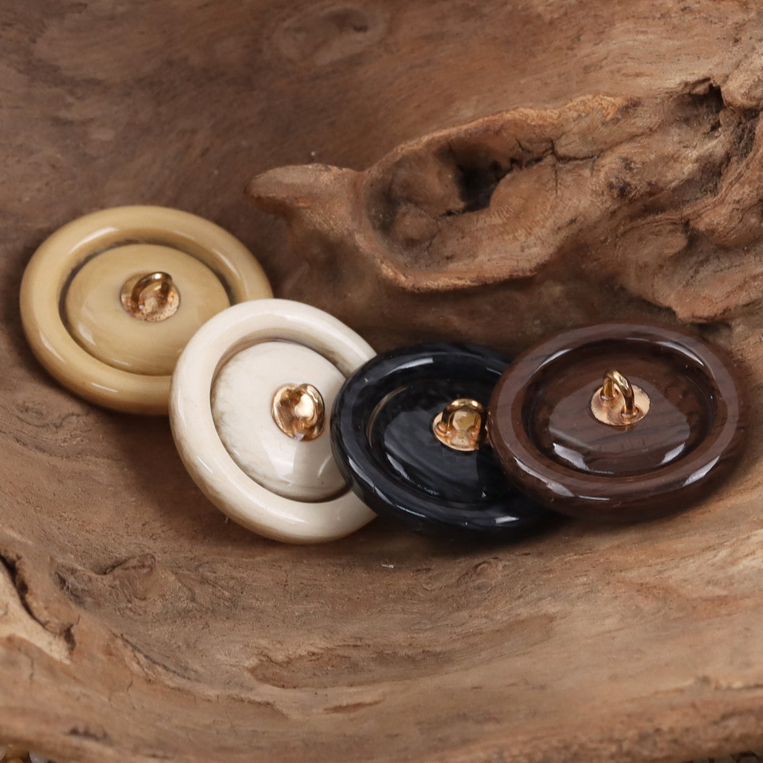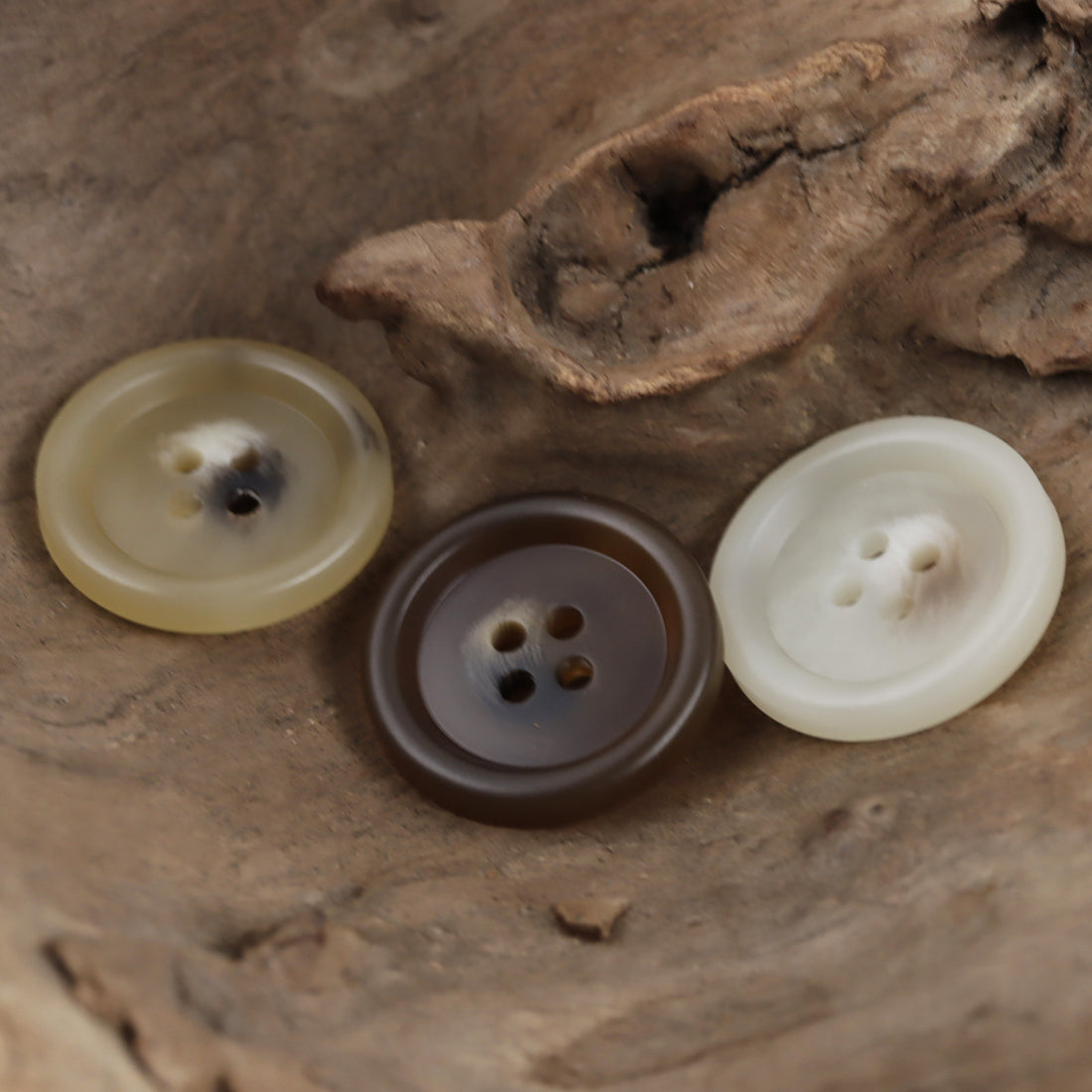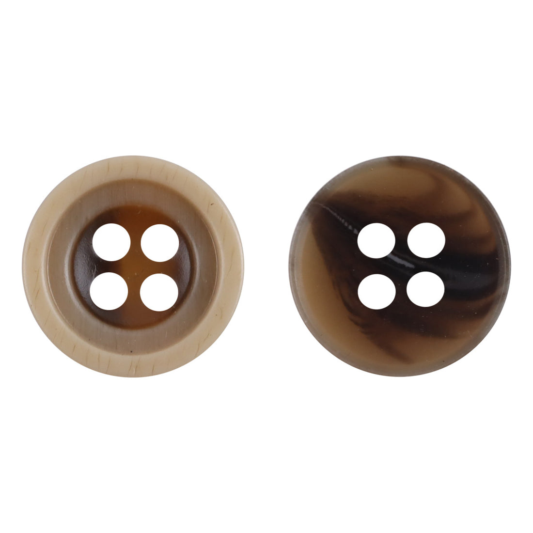 Runde 4-huls harpiks knapper til kamelfarvede frakker og vindjakker 30 stk