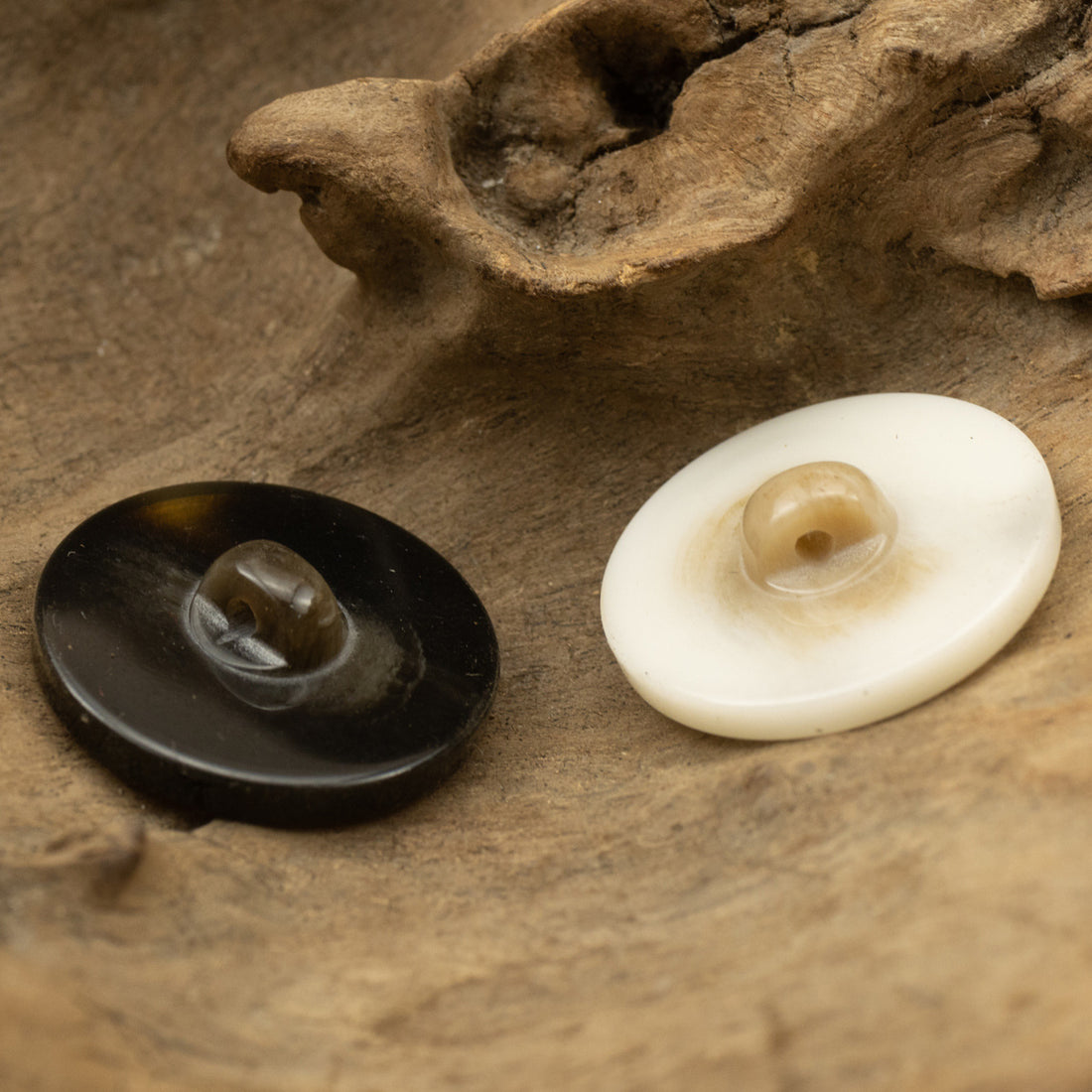 Runde kantede sorte og hvide lys- og skyggeresinknapper 30 stk