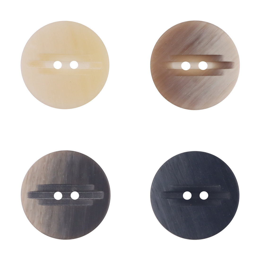 Flade 2-huls knapper i træstruktur, off-white harpiks til overtøj - 20 stk.
