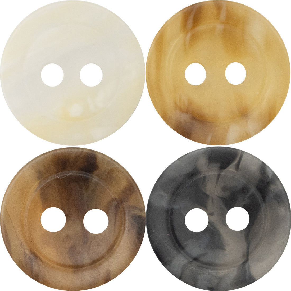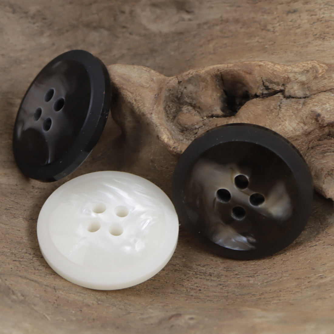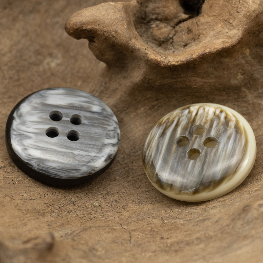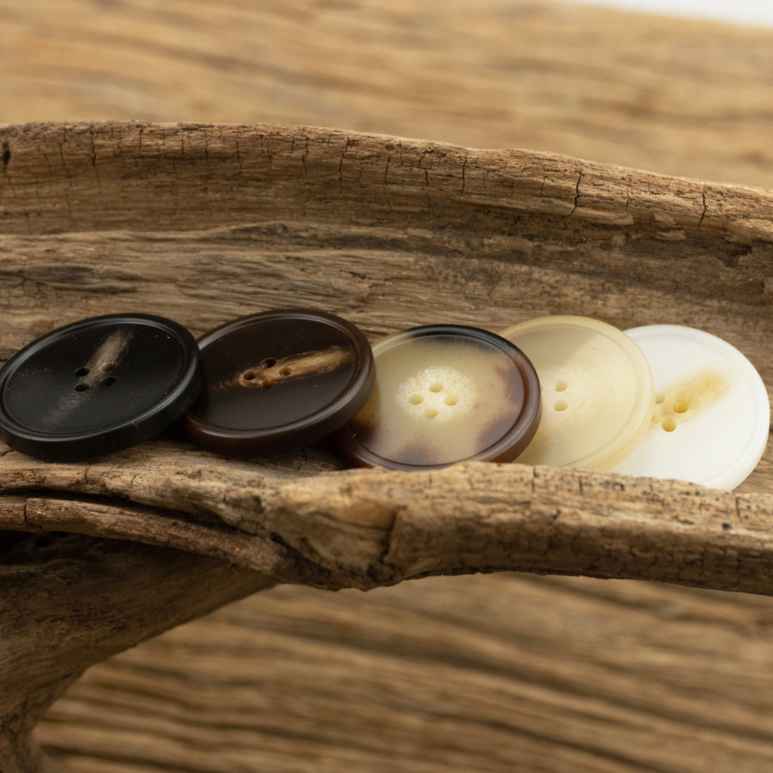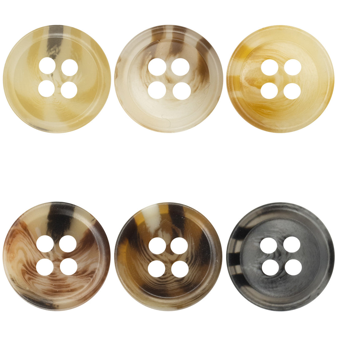 Runde tynde kantede knapper med harpiksbelægning, imiteret hornstruktur 50 stk.