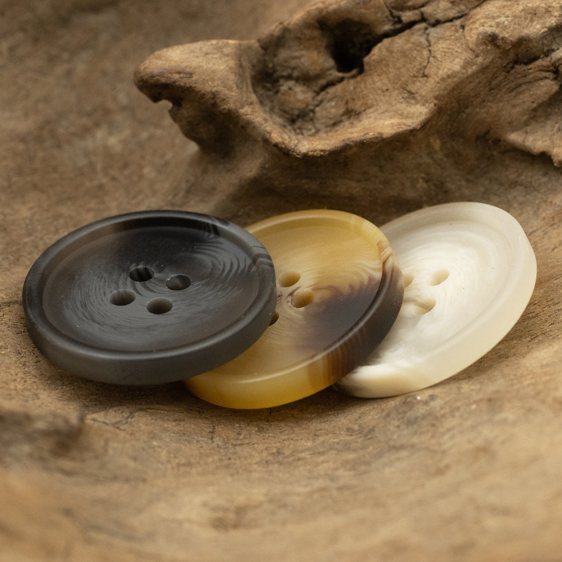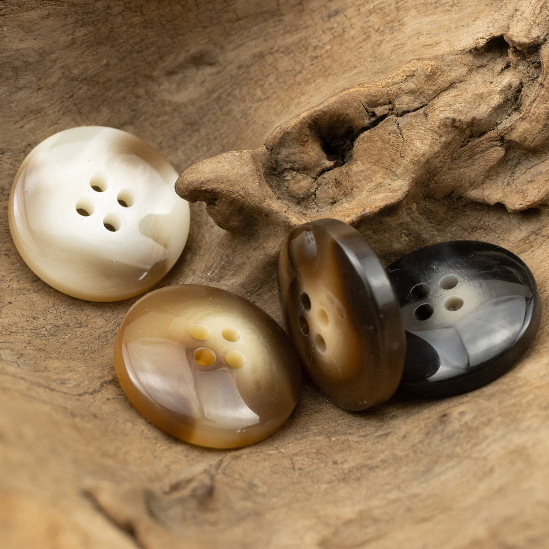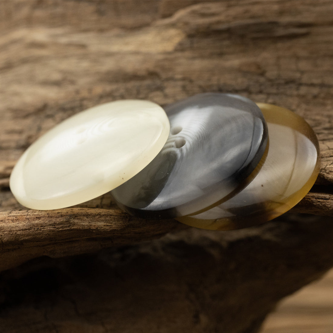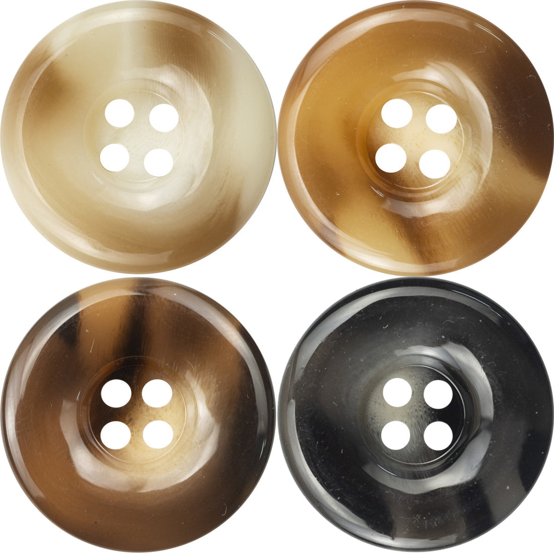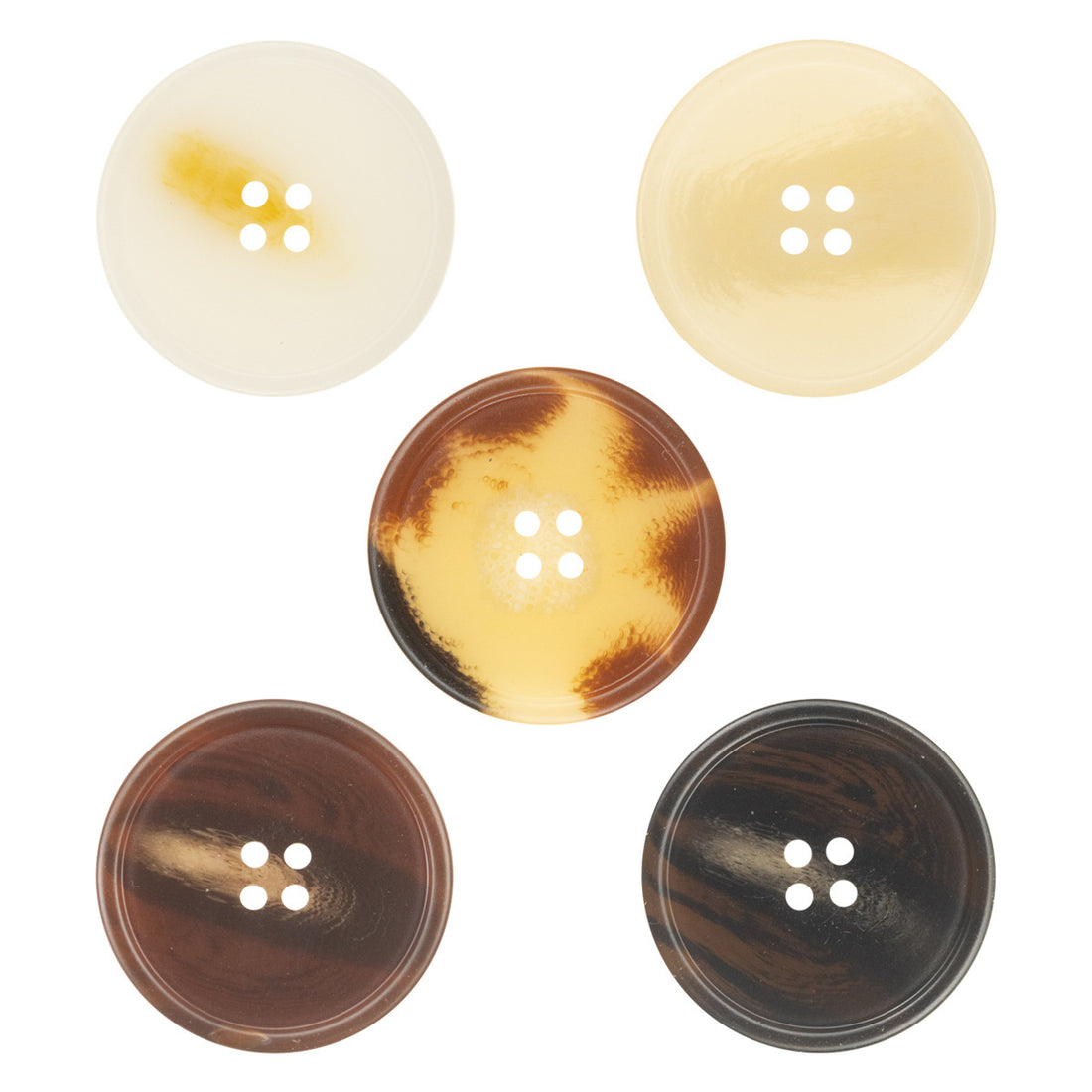 Runde tynde kantede knapper med harpiksbelægning, imiteret hornstruktur 50 stk.