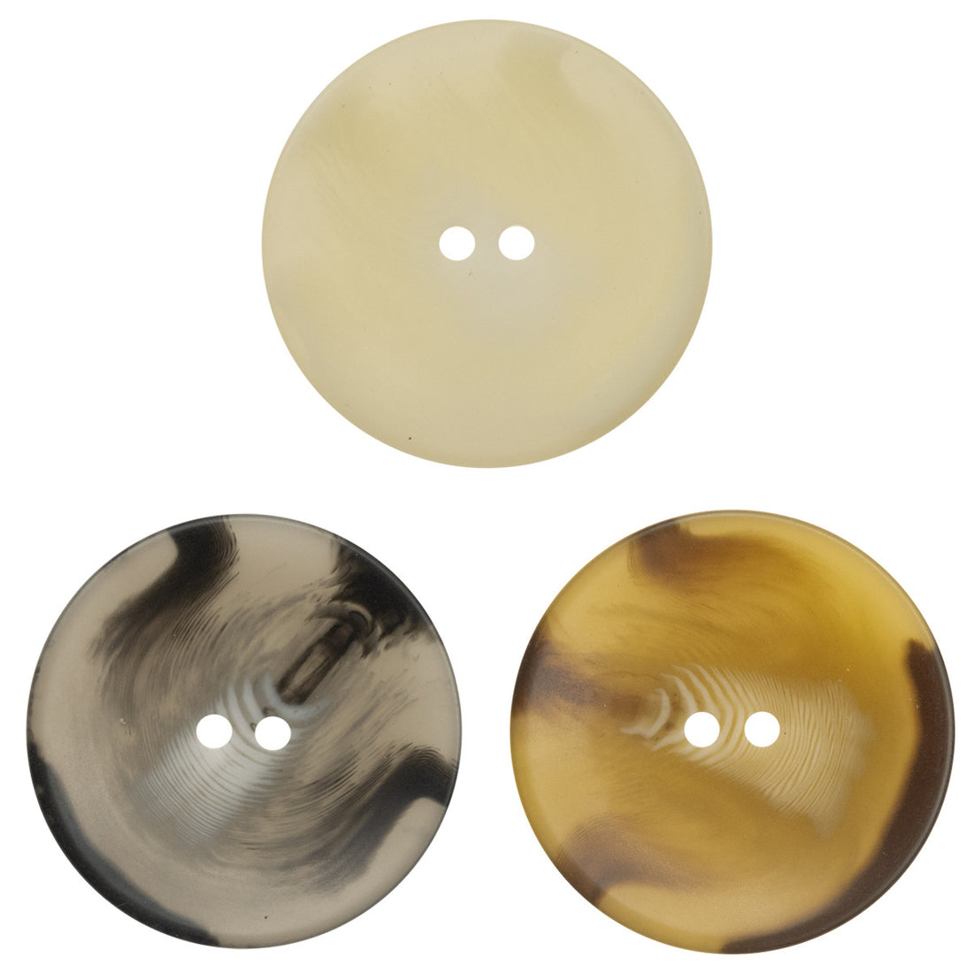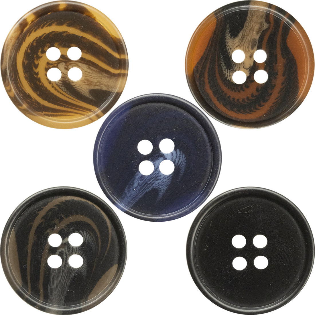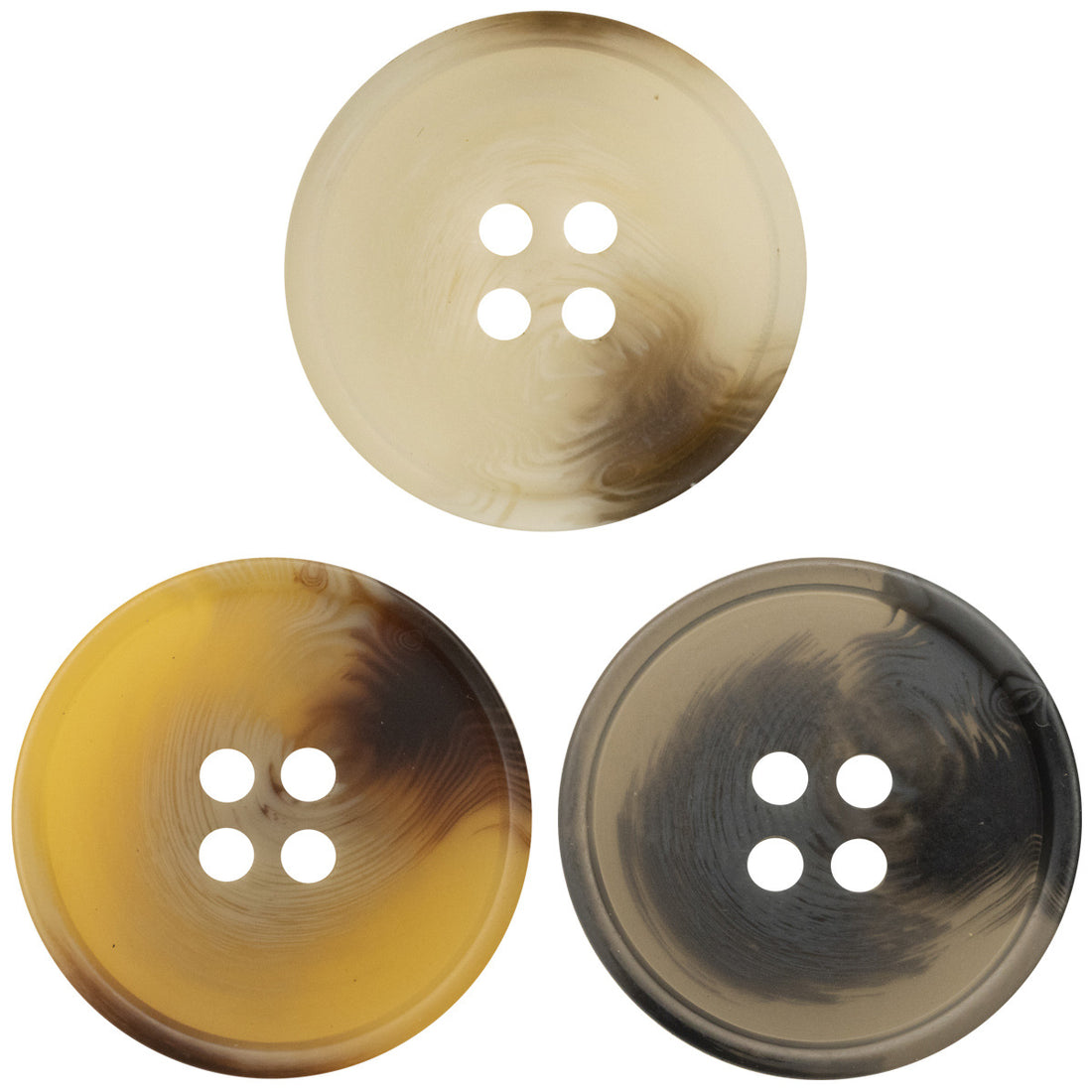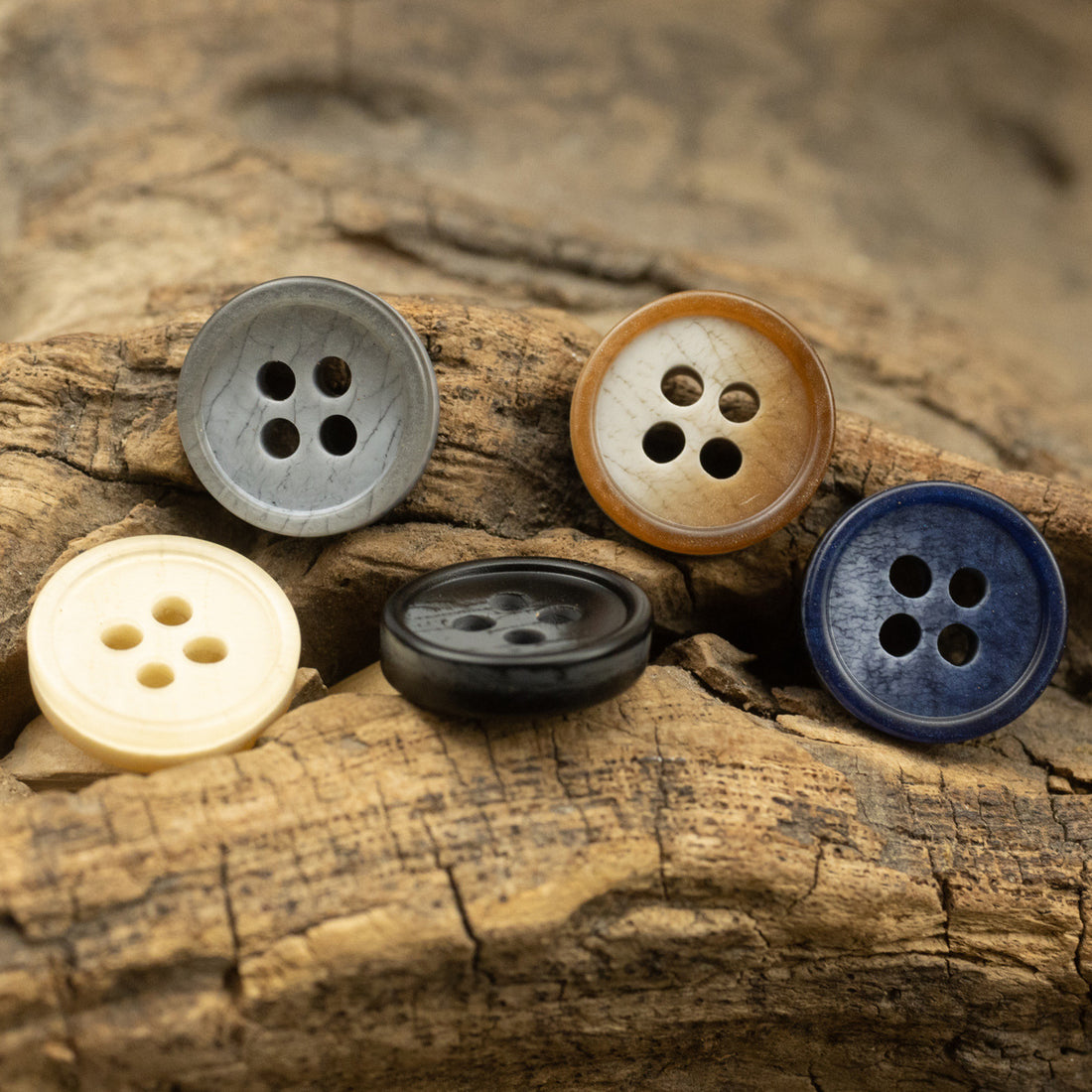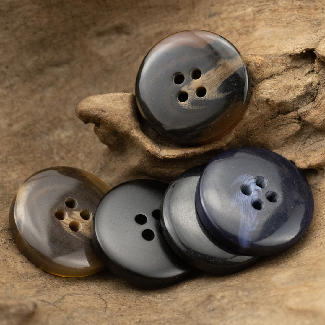 Runde tynde kantede knapper med harpiksbelægning, imiteret hornstruktur 50 stk.