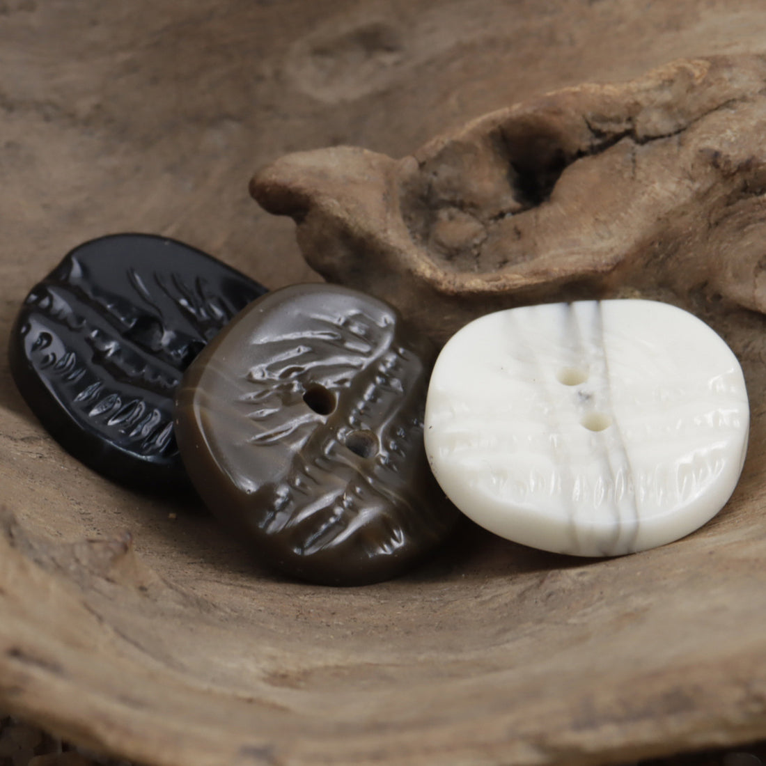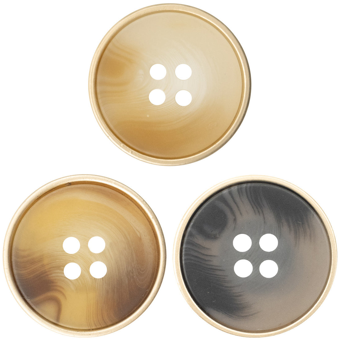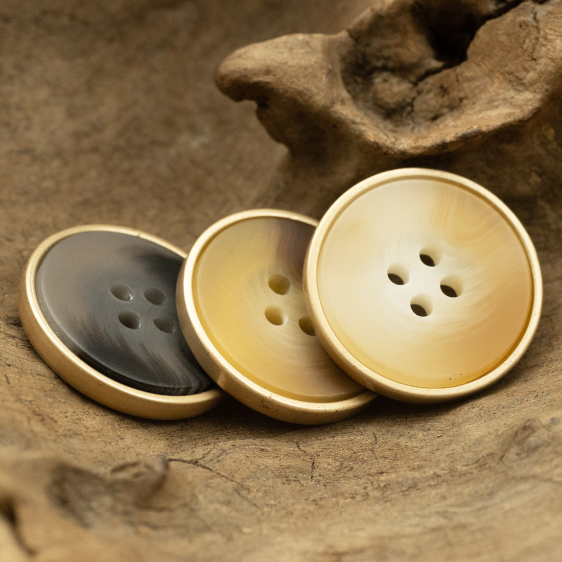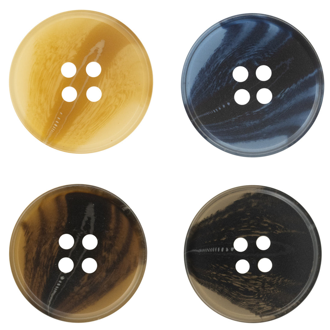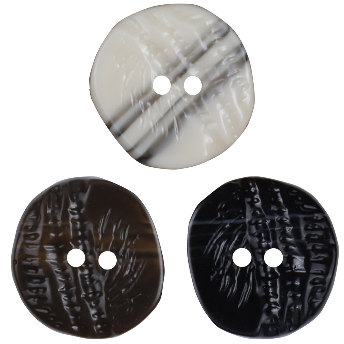 Runde tynde kantede knapper med harpiksbelægning, imiteret hornstruktur 50 stk.