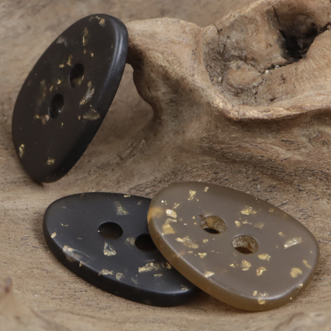 Ovale brune knapper i harpiks med guldfolie tekstur jordfarvet tone 30 stk.