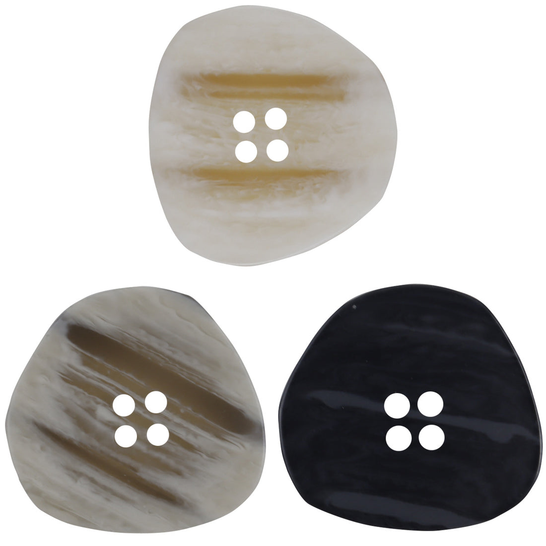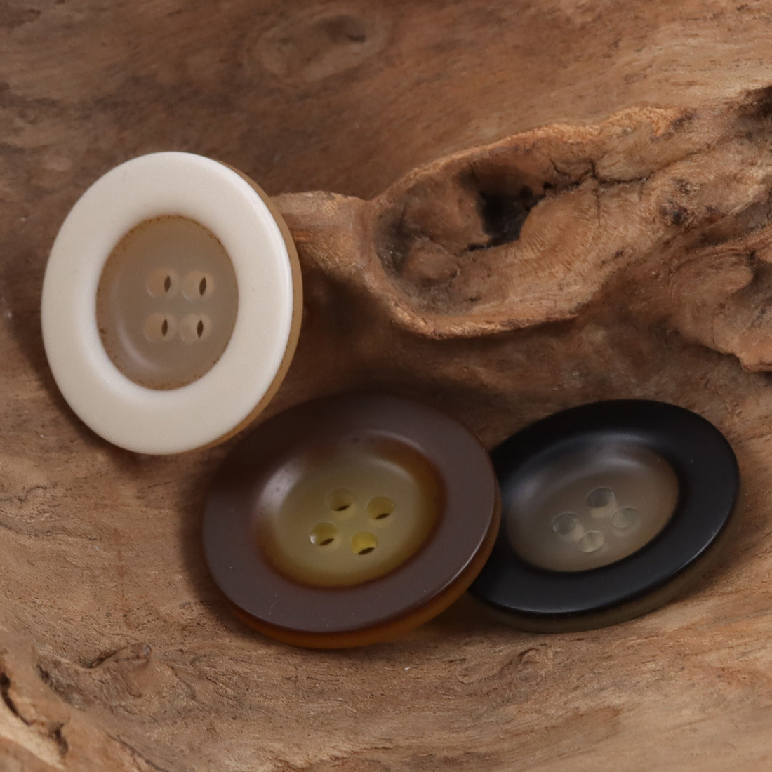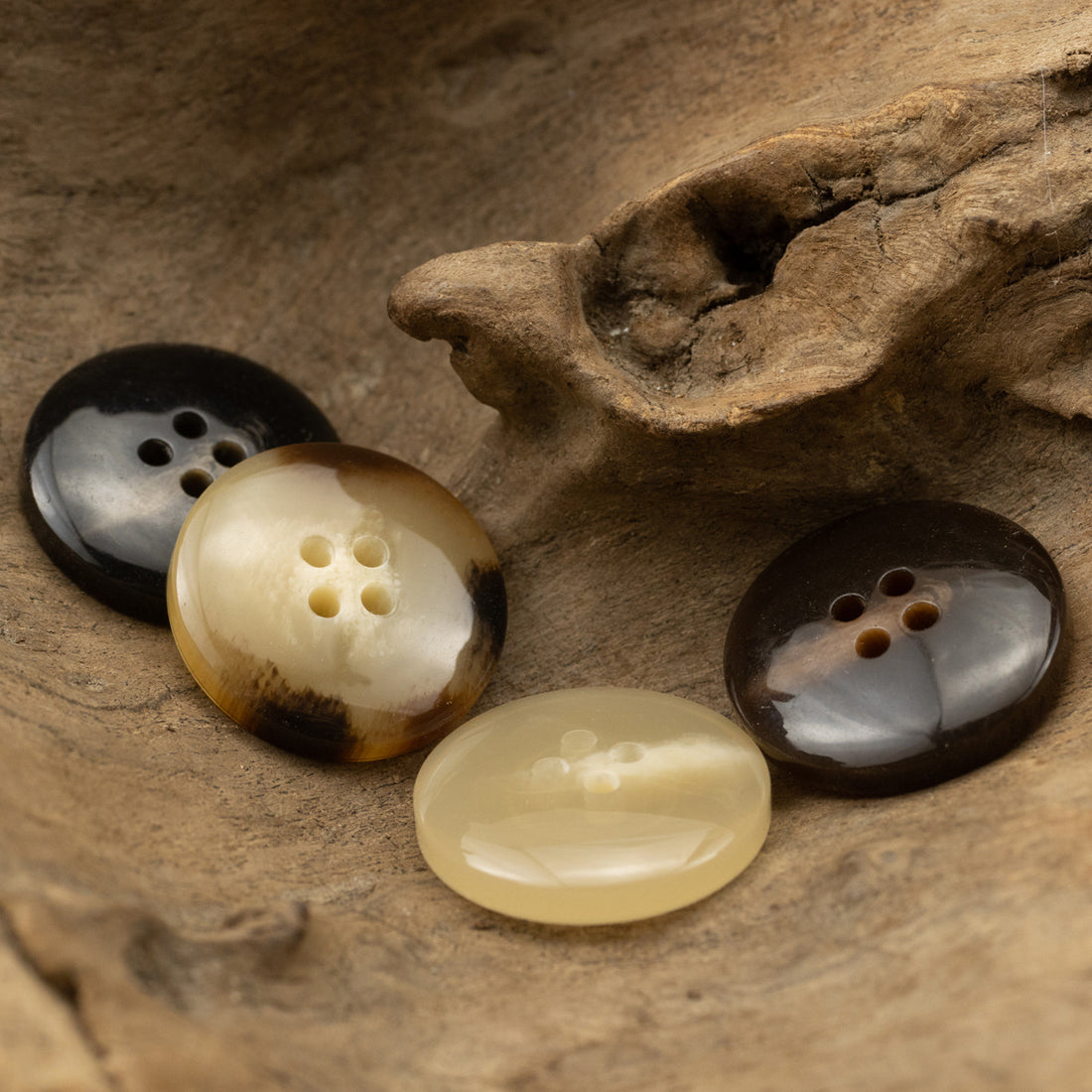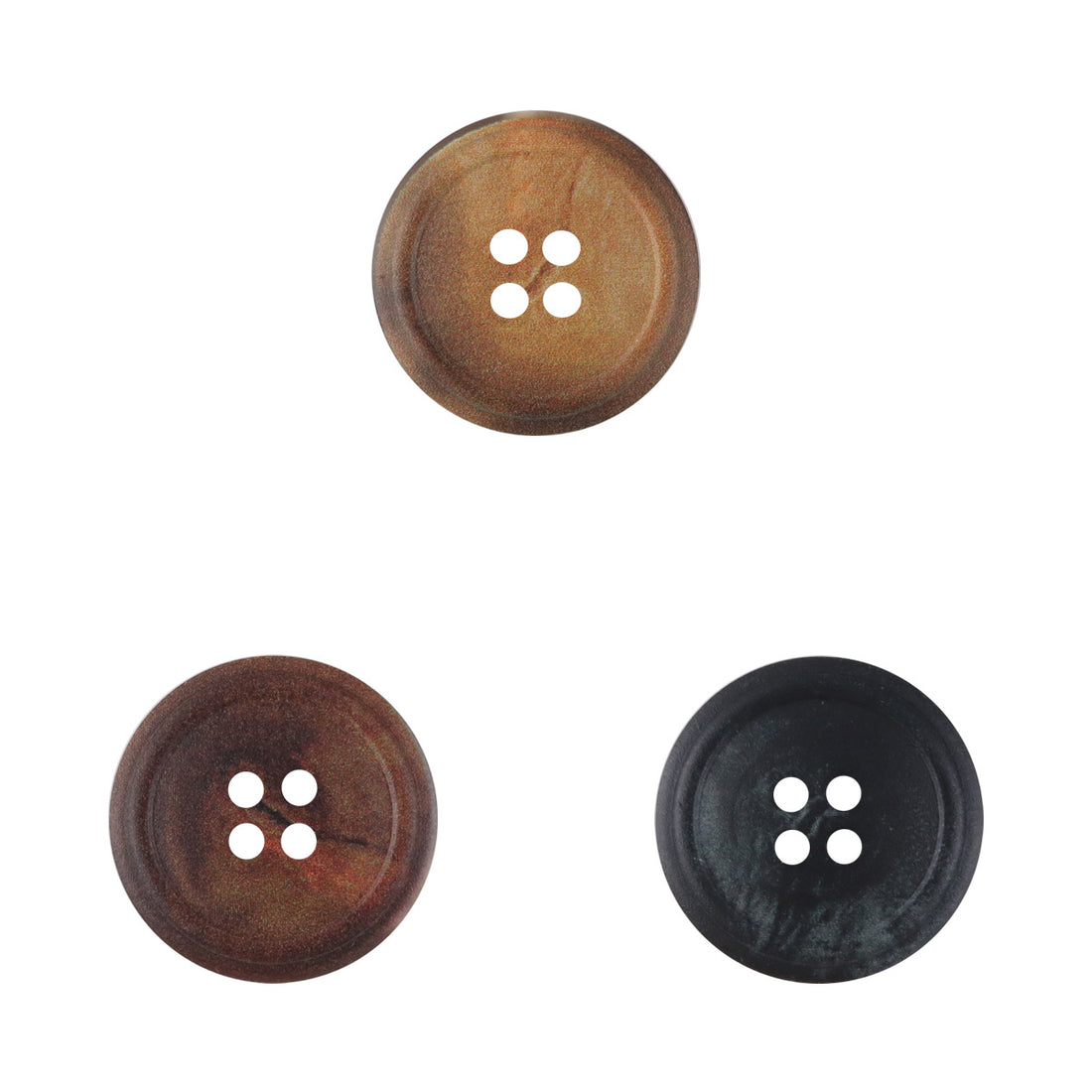 Klassiske bredkantede knapper i harpiks, der efterligner hornmønster, 50 stk