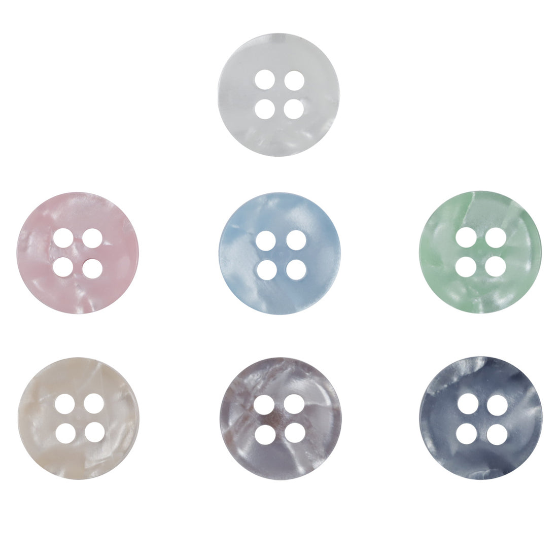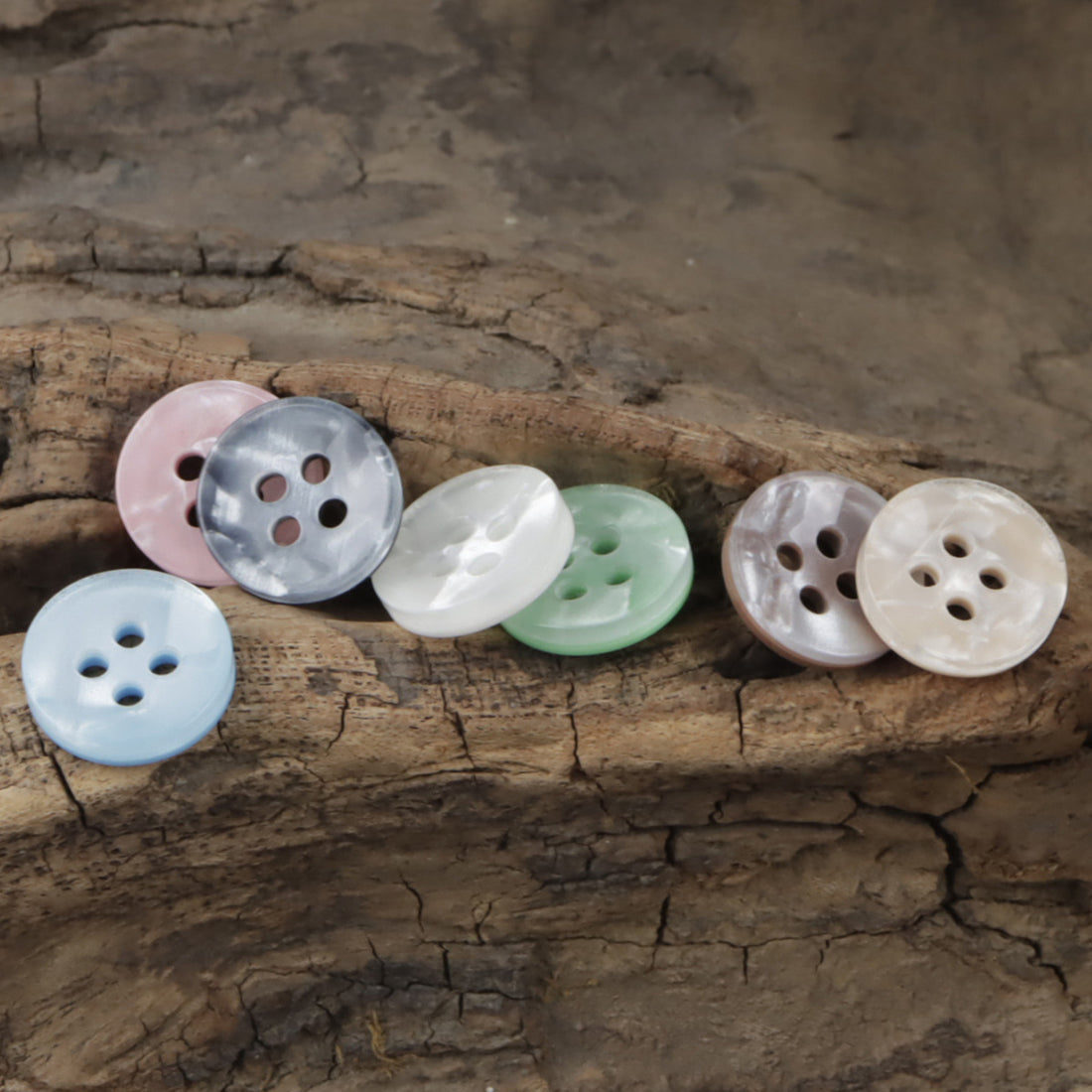 Runde 11,5mm slikfarvede imitationsskalleresinknapper 70 stk