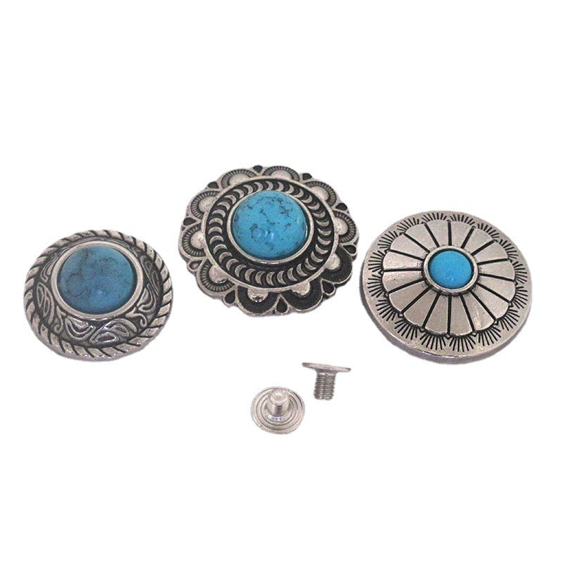 Turkis metalnitteknapper til bælter, tasker, tøj 50 stk (10 stilarter)