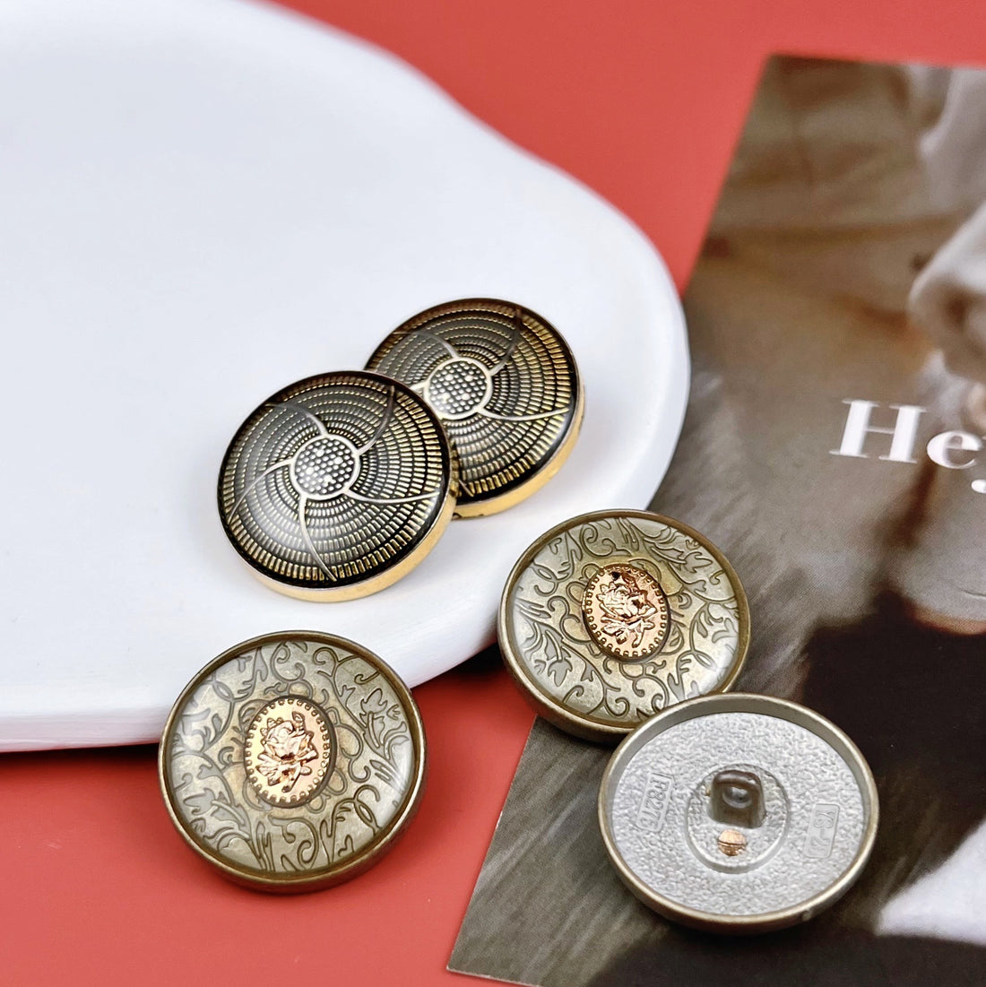 Tag et skridt tilbage i tiden med vores Vintage Knapper, designet til at bringe en klassisk og unik charme til dine projekter. Perfekt til modedesignere, hobbyfolk og gør-det-selv entusiaster, disse knapper er ideelle til at tilføje et retro præg til beklædning, tilbehør og boligindretning. Hver knap er omhyggeligt udvalgt eller fremstillet for at afspejle den tidløse elegance fra svundne tider.