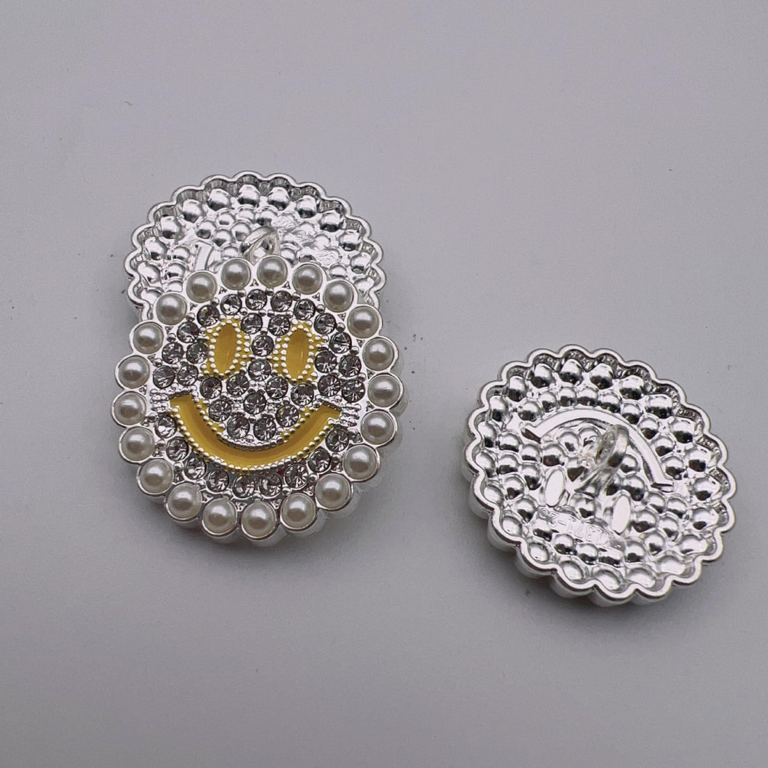 25mm Perlebesatte Smile Metal Skaft Knapper 50stk