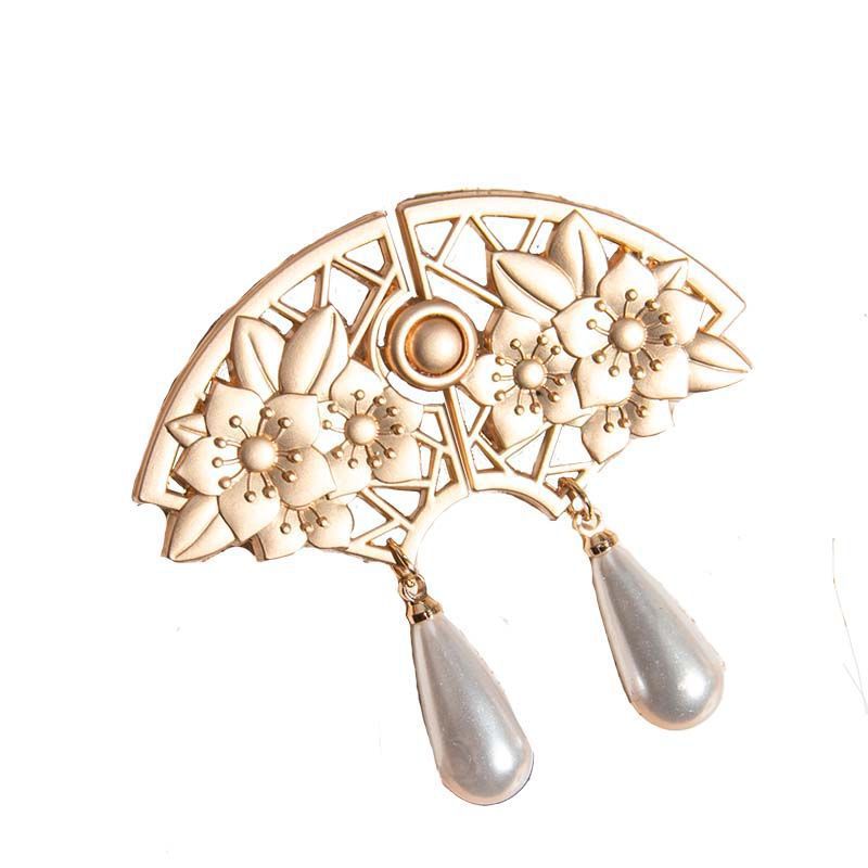5cm kinesisk vintage gylden ferskenblomst vifte metal frø knapper 8 stk
