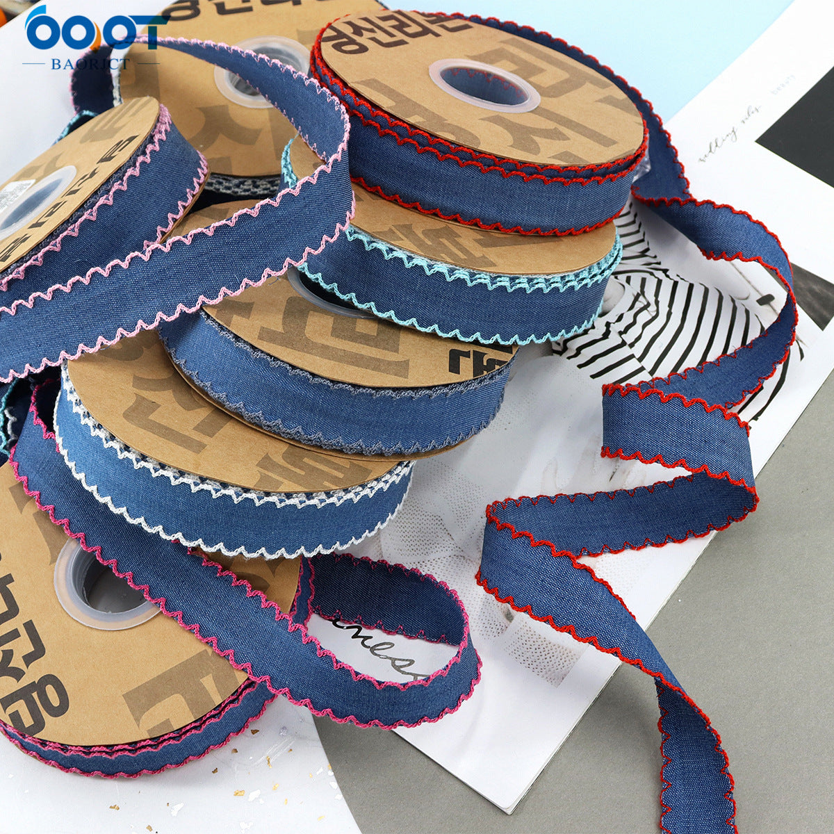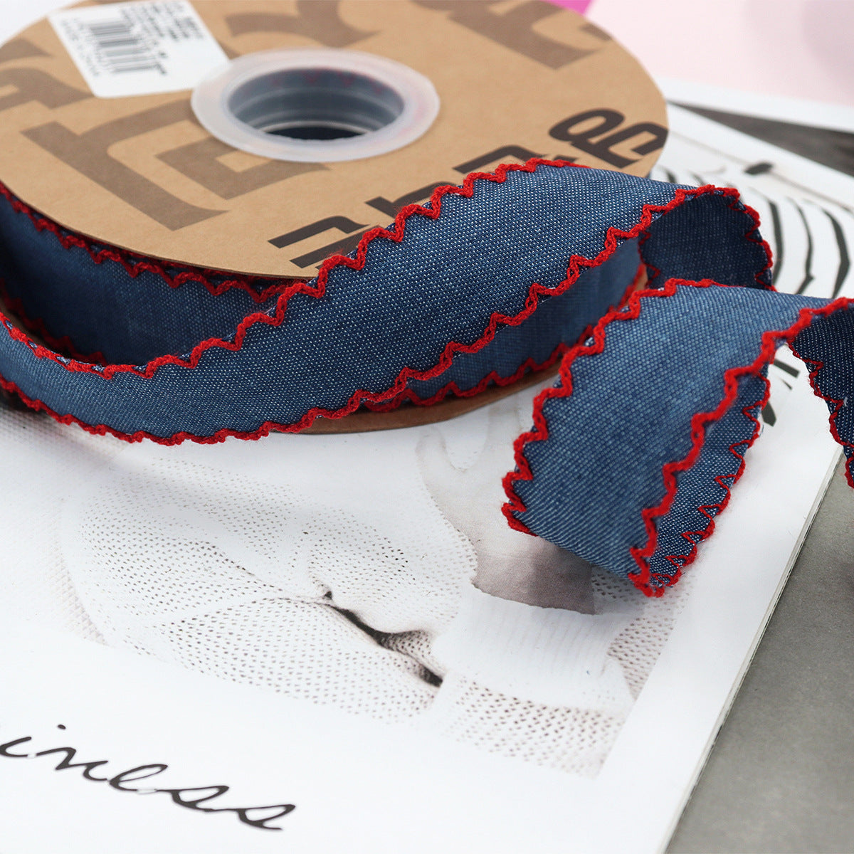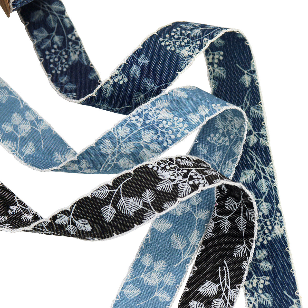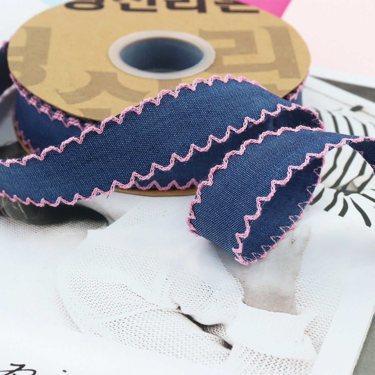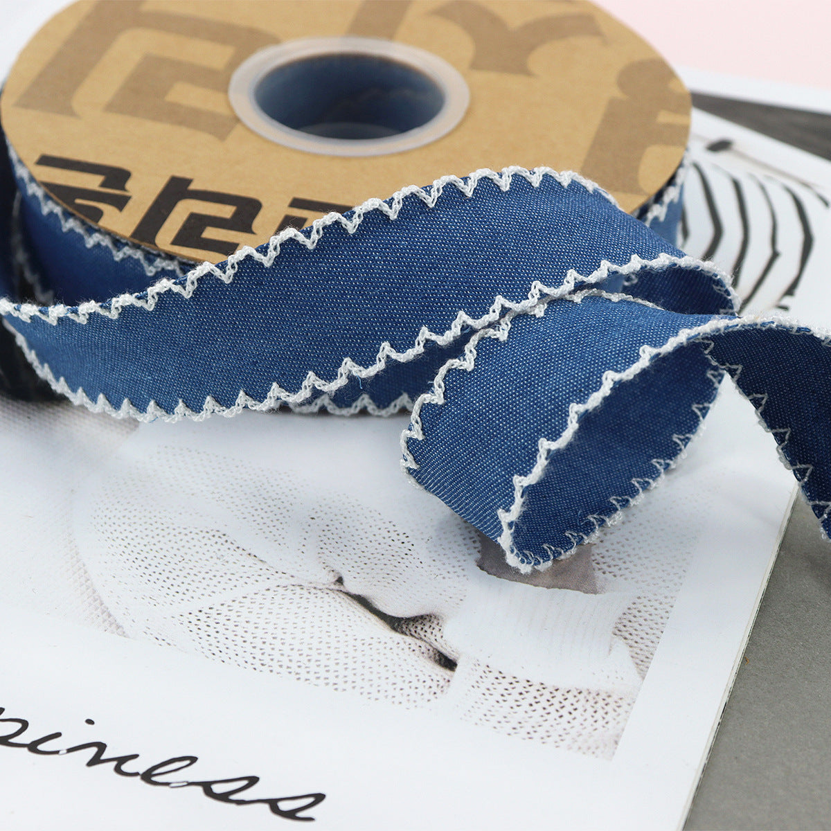 Blondekanterne giver en blød kontrast til den robuste denimbase, hvilket muliggør en blanding af styrke og elegance. Tilgængelige i forskellige bredder for at passe til forskellige projektstørrelser, er disse bånd perfekte til at lave sløjfer, binde på gavepakker eller som dekorative accenter på beklædning. Med en trådkant for nem formgivning kan du skabe indviklede designs og bevare deres struktur.