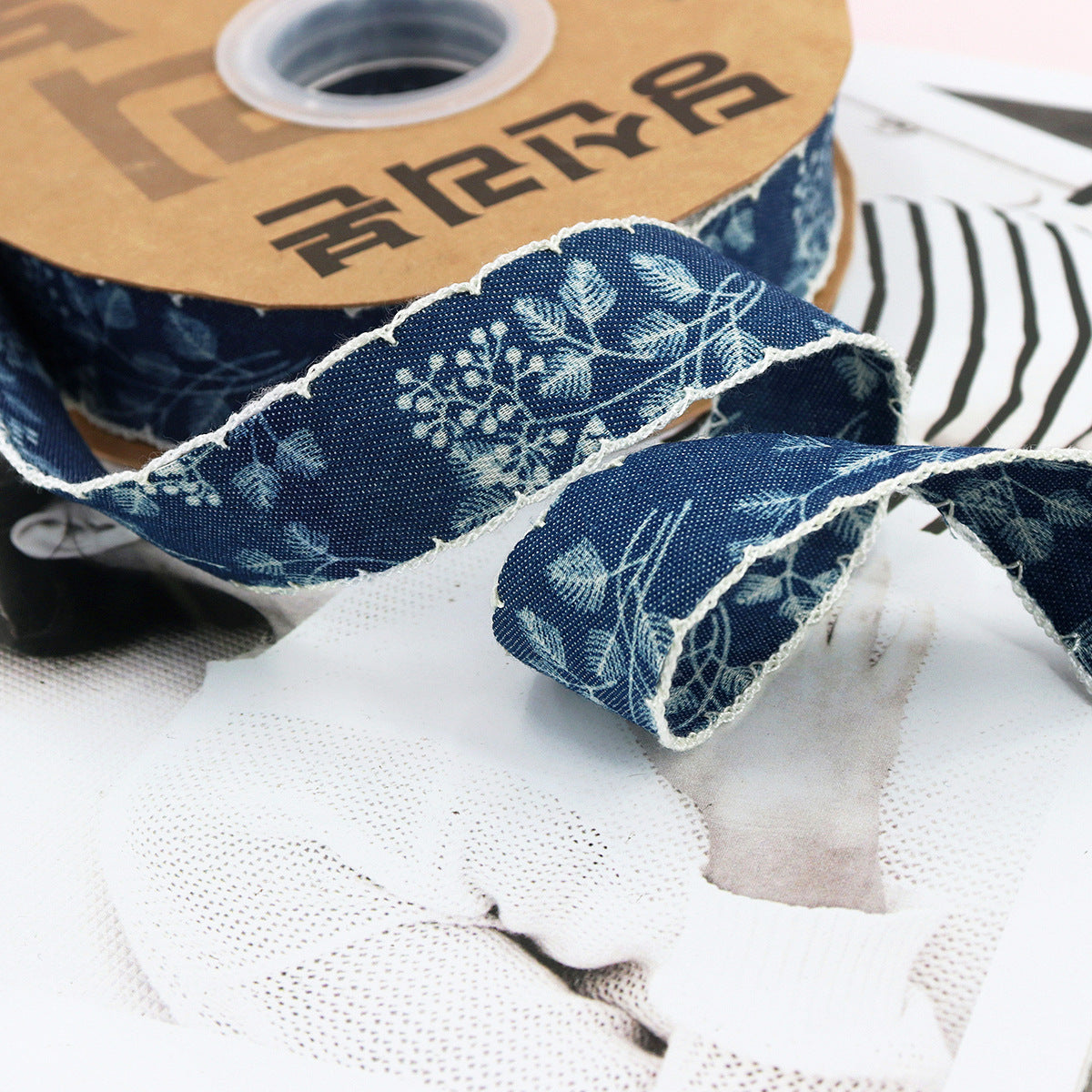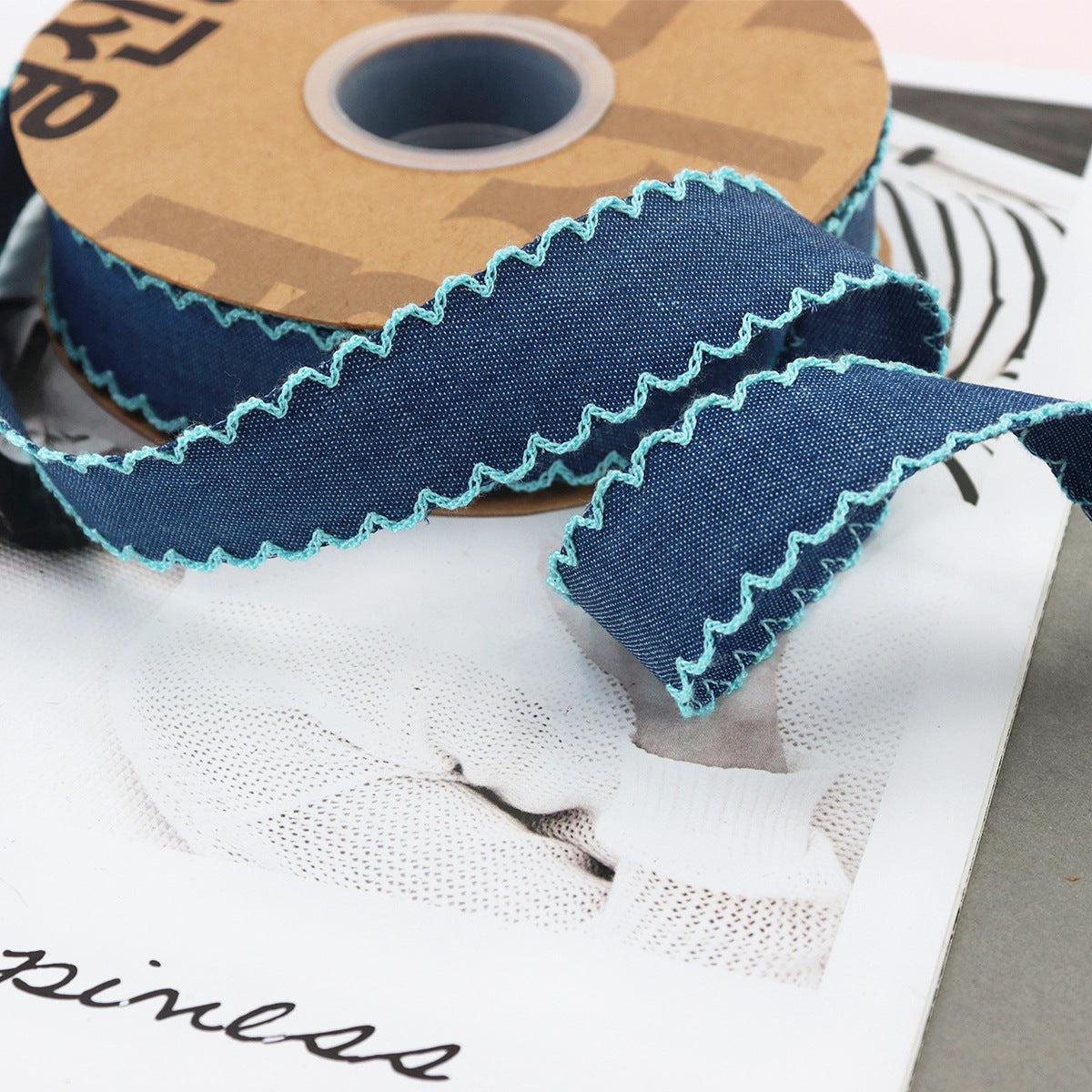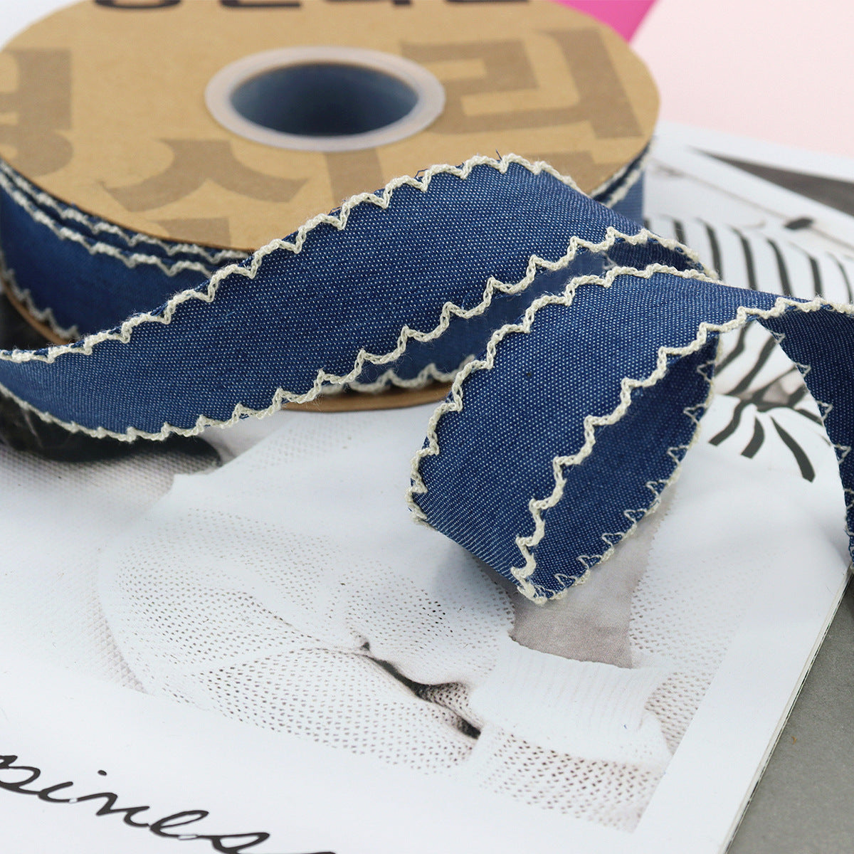1/1,5 tomme blondekantet denimbånd til håndværk og pynt 5 Yards