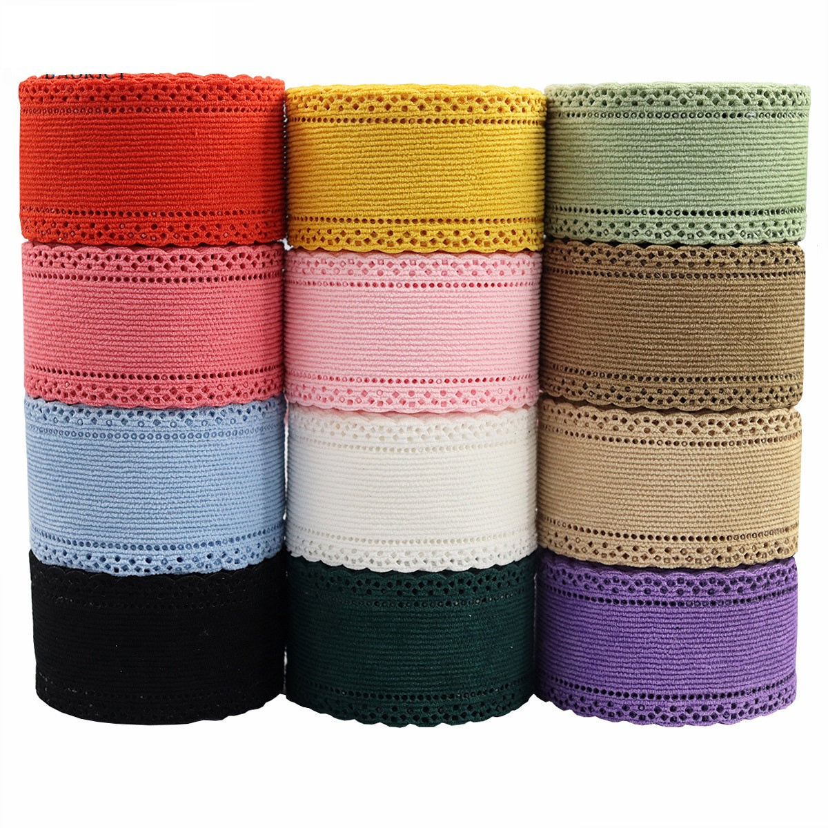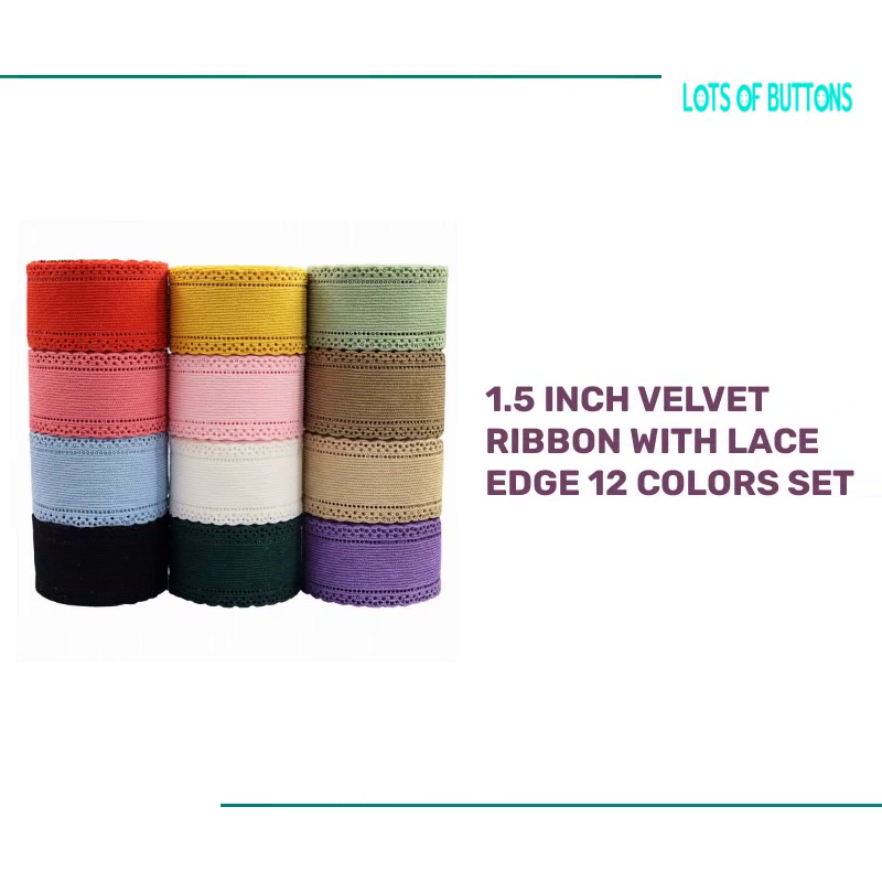 1.5 Tommer Fløjlsbånd med Blonderkant 12 Farver Sæt