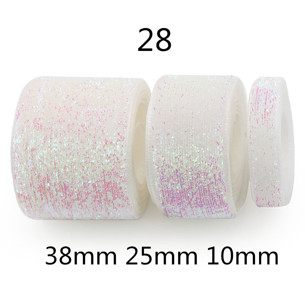 10/25/38mm Gradient Chenille Bånd med Glimmer 3 Størrelses Pakke