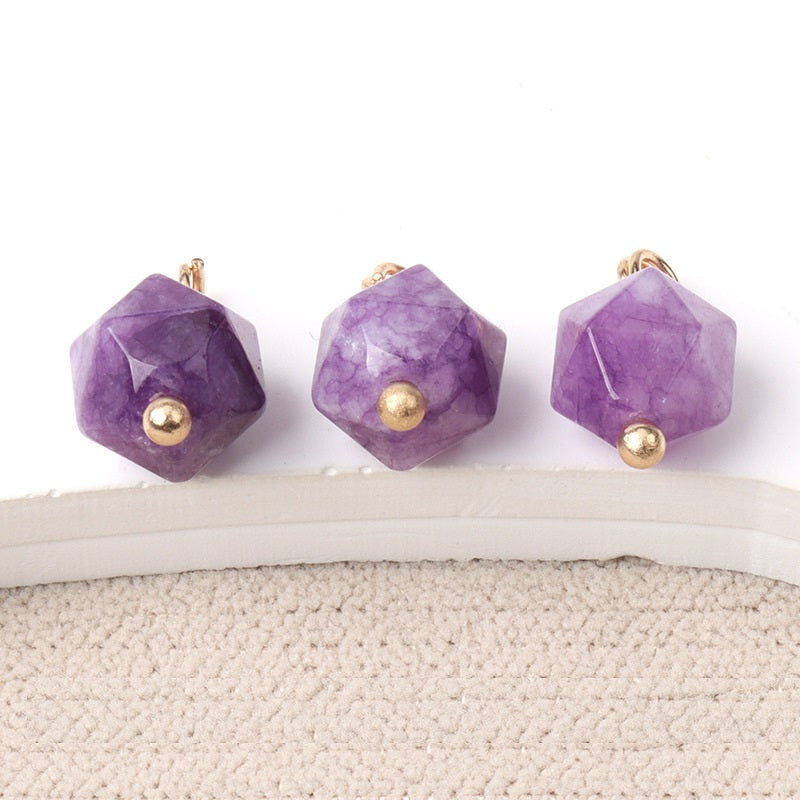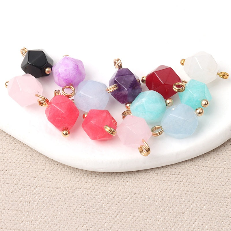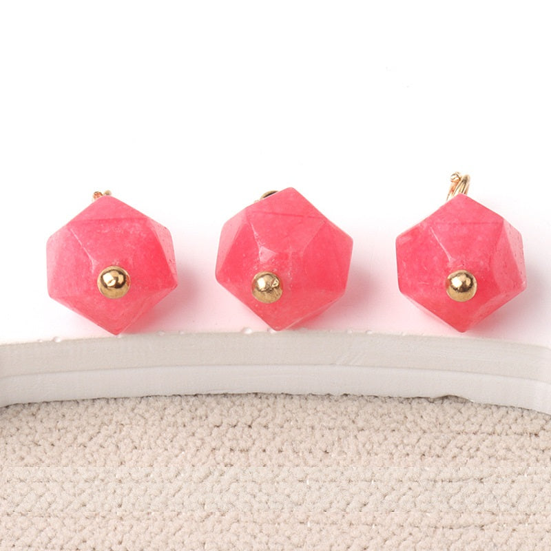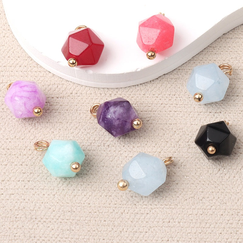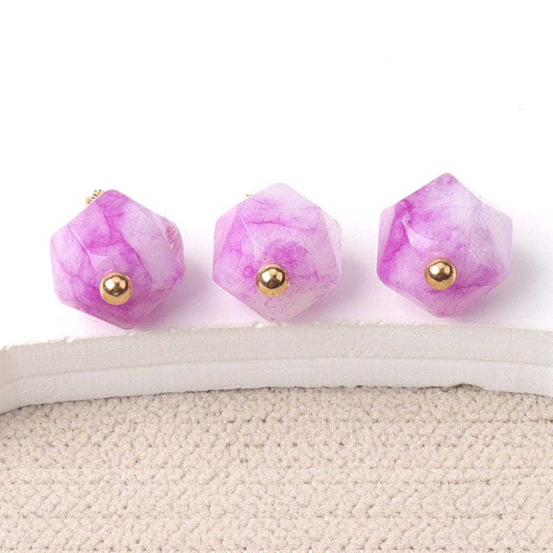 10mm Farverige Naturlige Multifacetterede Jade Knapper med Guld Nitter 20stk