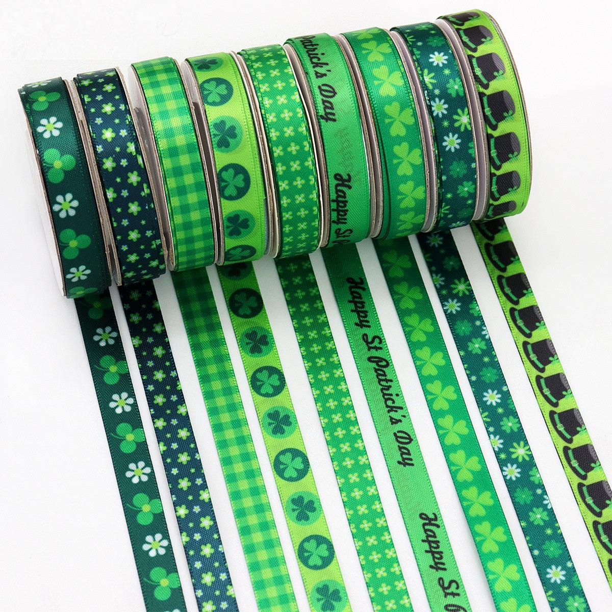 10mm grøn firkløverbånd til Sankt Patricks dag 18 pakke
