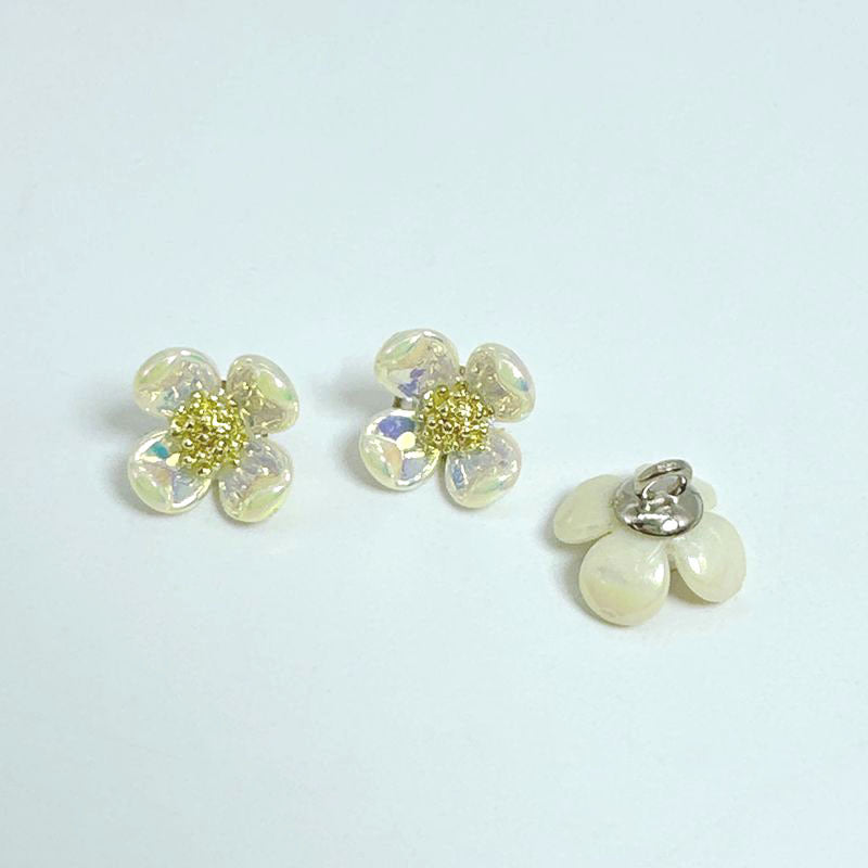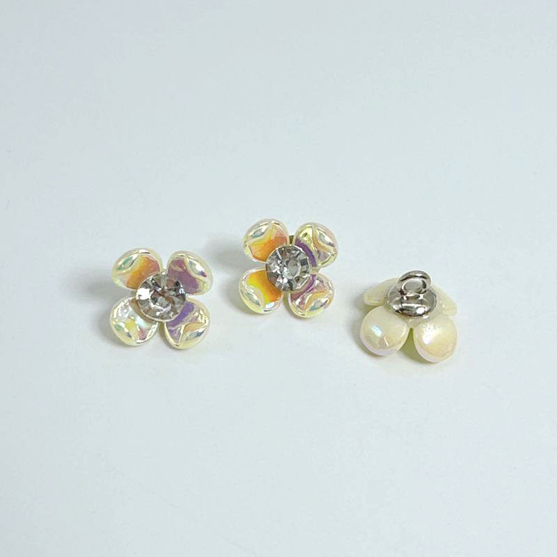 11.5mm firkløver perlemorsbelagte metalknapper med skaft 30 stk.