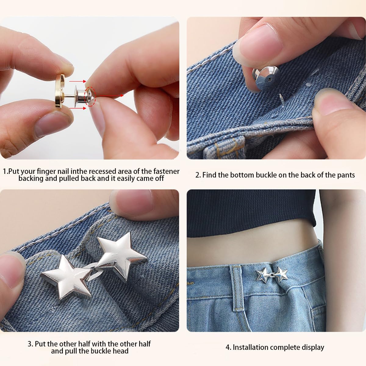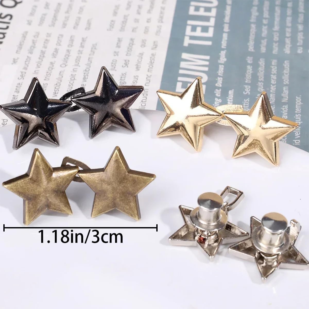 【Stjernedesign】Knapperne har et stilfuldt stjerneformet design, der tilføjer unik dekoration til dine jeans.