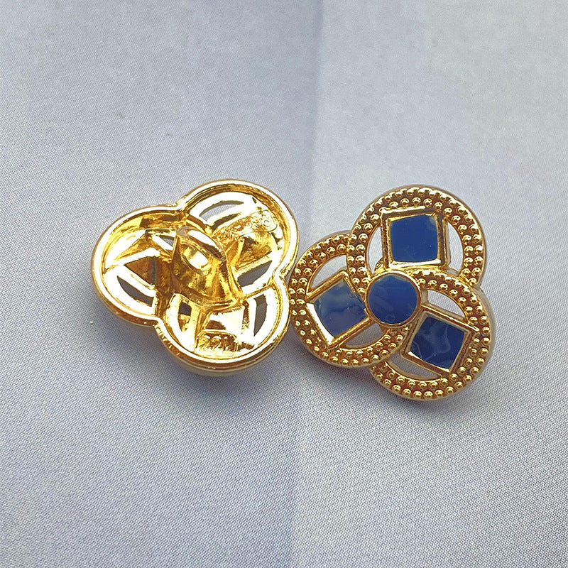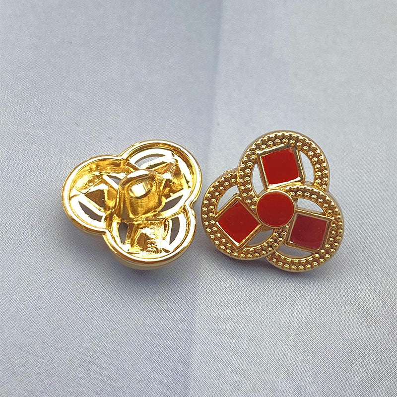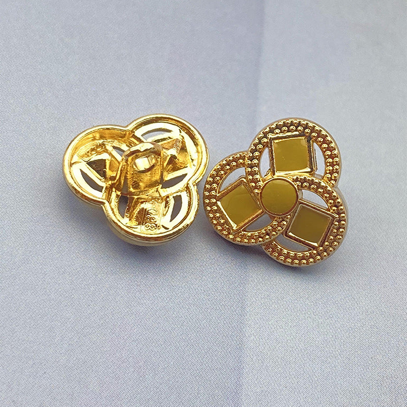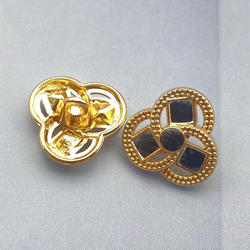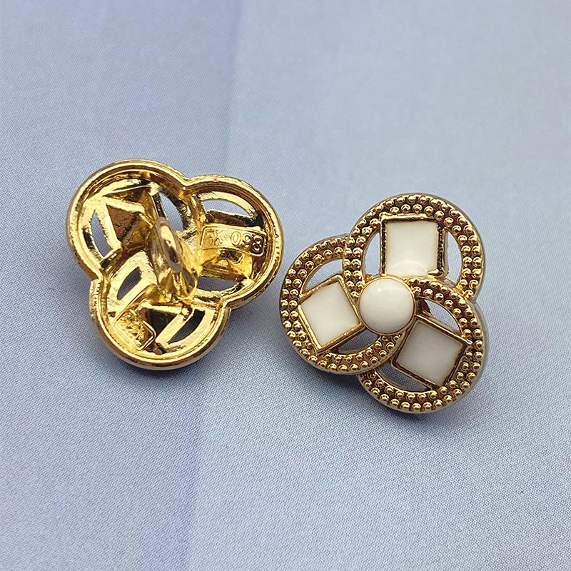 Forbedr dine skjorter med vores 14mm kløverformede blomsterknapper i metal med skaft. Disse knapper har et charmerende kløverdesign, fremstillet af metal af høj kvalitet med en holdbar finish. Skaftets bagside sikrer nem og sikker fastgørelse til dine beklædningsgenstande. Perfekte til en række anvendelser, herunder skjorter og bluser, er disse knapper et ideelt valg for dem, der værdsætter traditionelt håndværk og unikke modeaccessories.