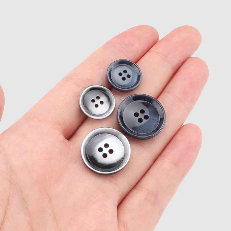 15/20mm Runde 4-Huls Miljøvenlige Harpiks Knapper Sort Mørkeblå 10 stk