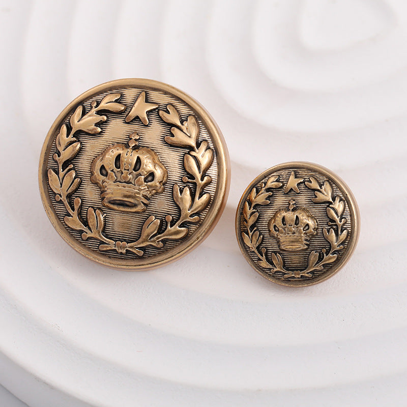15-23mm britisk stil antik guldkrone og laurbærblad metal knap 10 stk