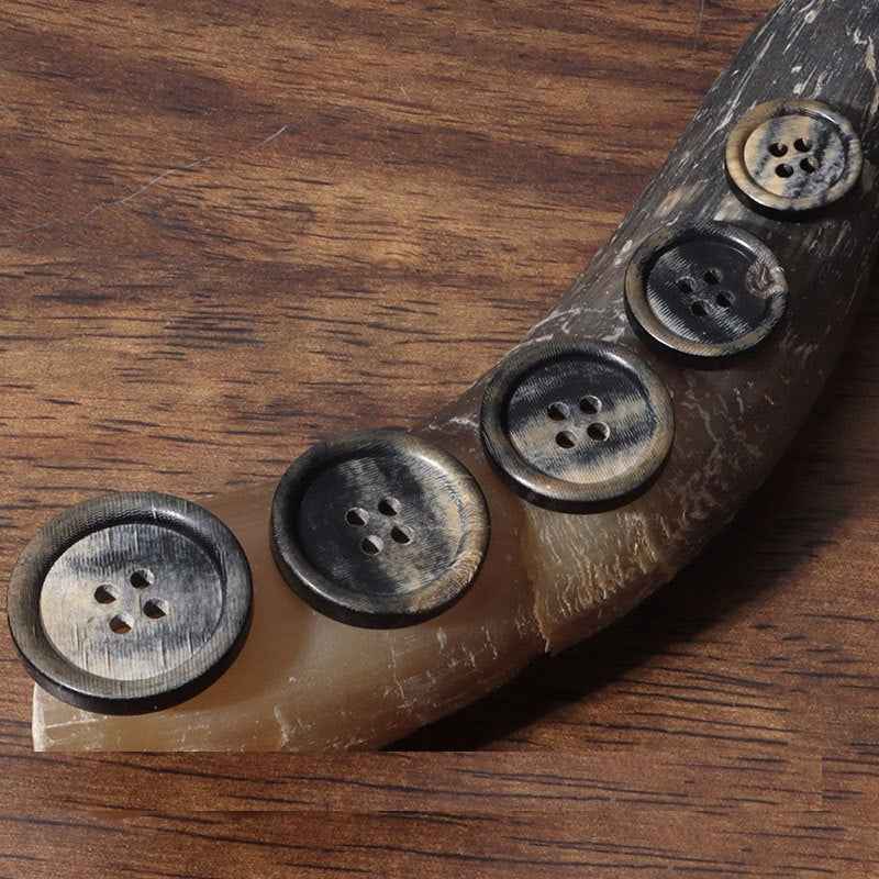 15-25mm Sorte Runde 4-Huls Ægte Bøffelhorn Knapper til High-End Herredragter og Frakker 2 stk