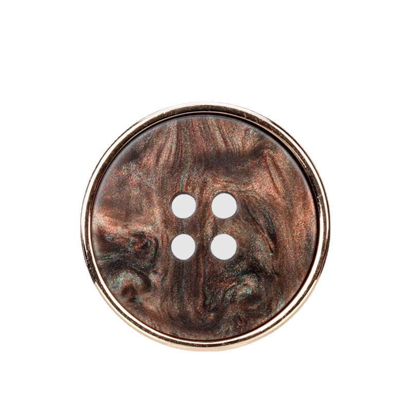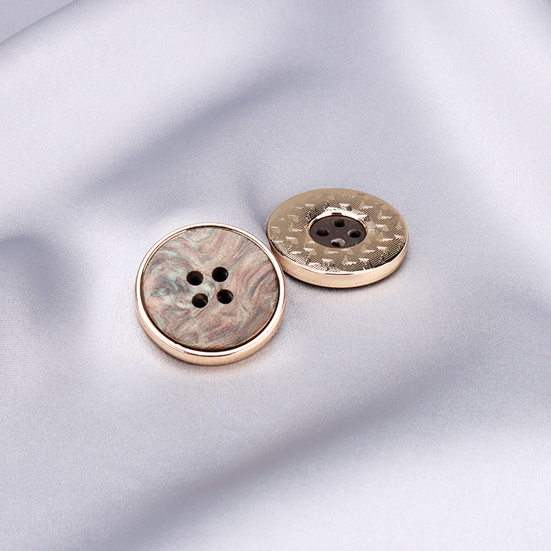Disse 15 - 25mm runde knapper er et fremragende valg til kvinders overtøj. Ved at kombinere metal og harpiks opnår de en perfekt balance mellem robusthed og elegance. Det fire-huls design sikrer ikke kun en sikker fastgørelse til stoffet, men tilføjer også et strejf af enkelhed. Kombinationen af materialer giver dem en unik tekstur og glans. De er ideelle til frakker, hvilket gør dem mere stilfulde. I jakkesæt forbedrer disse knapper den samlede professionelle og fashionable følelse. Deres cirkulære form er klassisk og alsidig, og passer godt til forskellige stilarter af kvindetøj. Disse knapper er et nøgleelement til at forvandle et almindeligt overtøjsstykke til en modig modeerklæring, der bringer en følelse af moderne enkelhed og charme til bæreren.