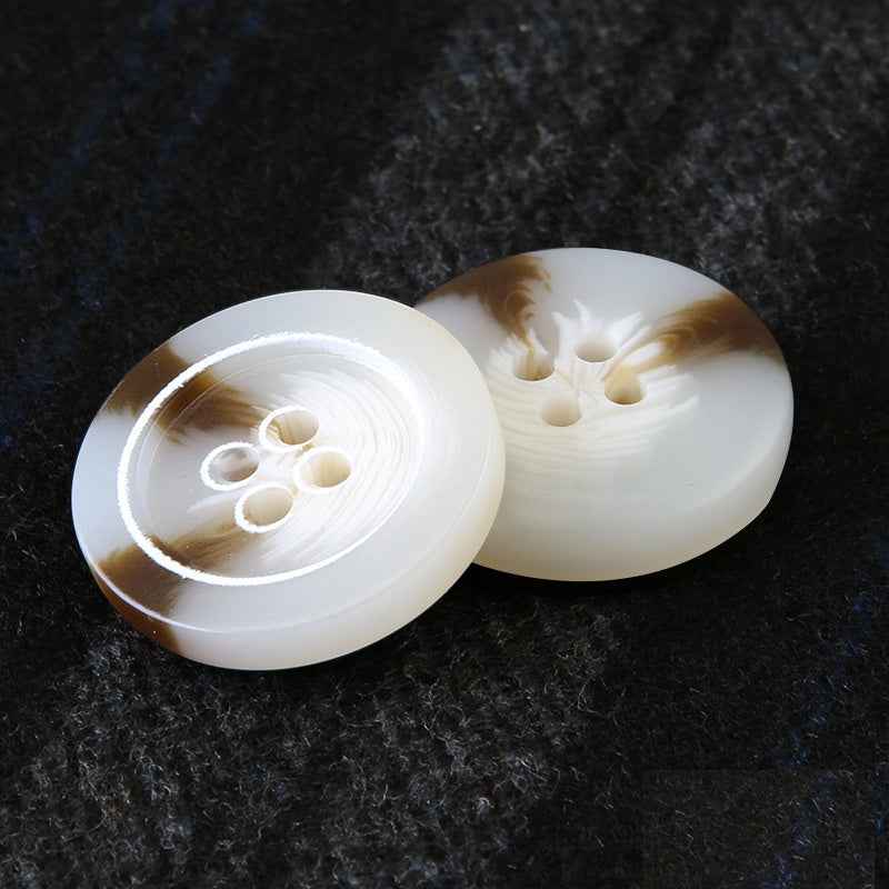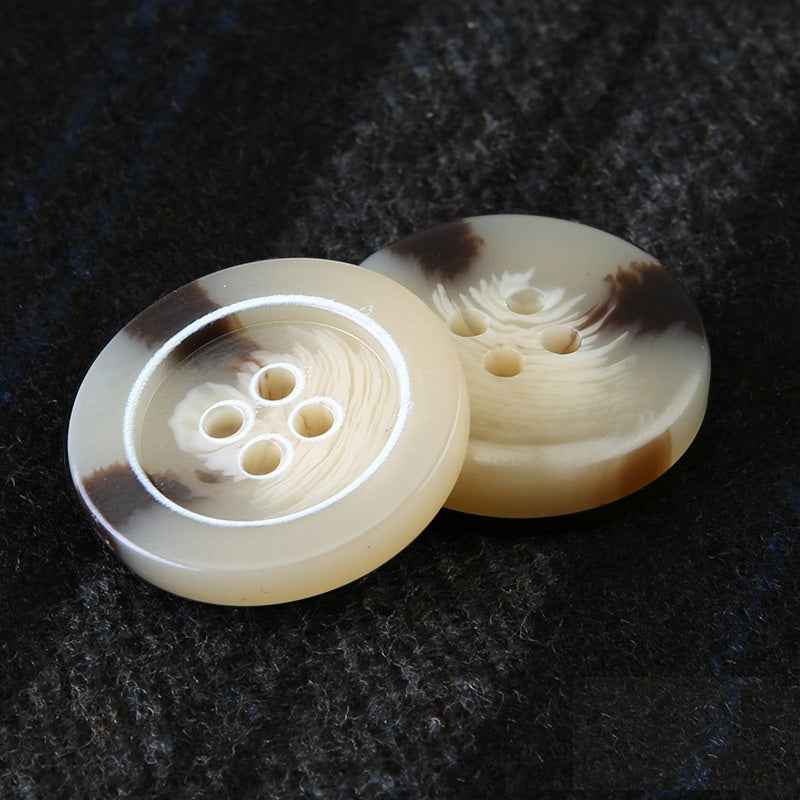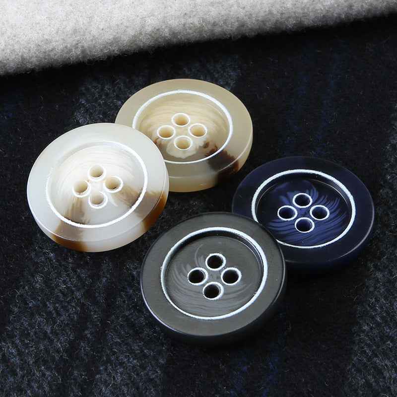 Disse 15-25 mm runde resin-knapper med fire huller er et uundværligt tilbehør til herretøj. Den klassiske runde form giver et tidløst og alsidigt look, der komplementerer en bred vifte af stilarter. Uanset om det er et formelt jakkesæt, en afslappet skjorte eller et par bukser, passer disse knapper perfekt ind.