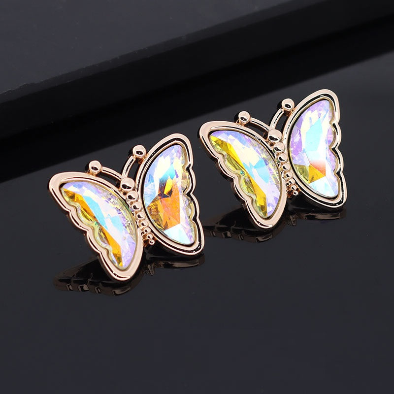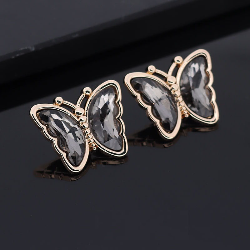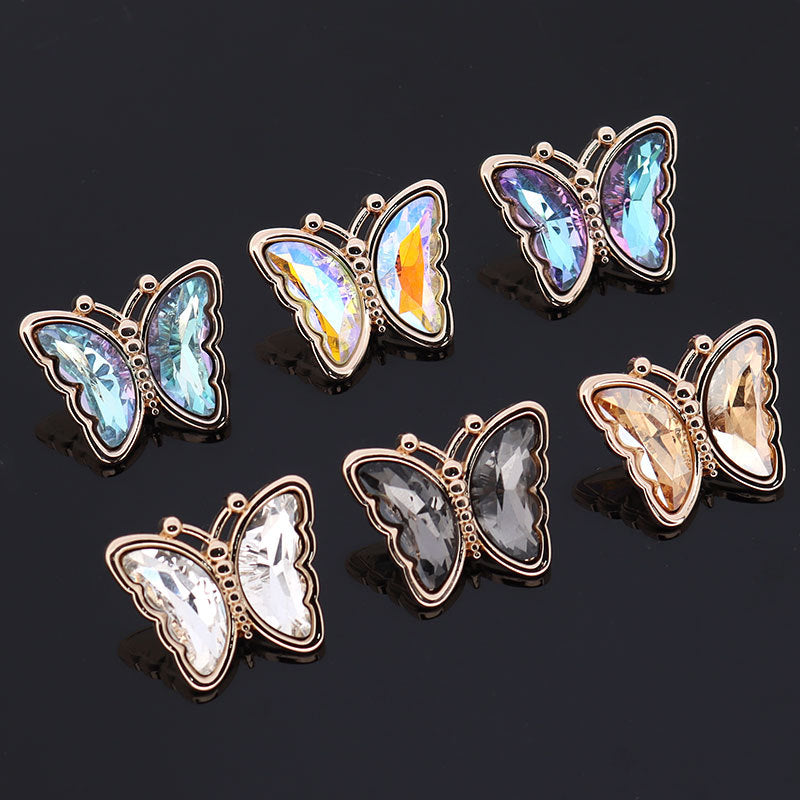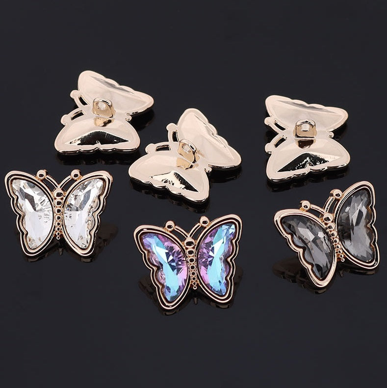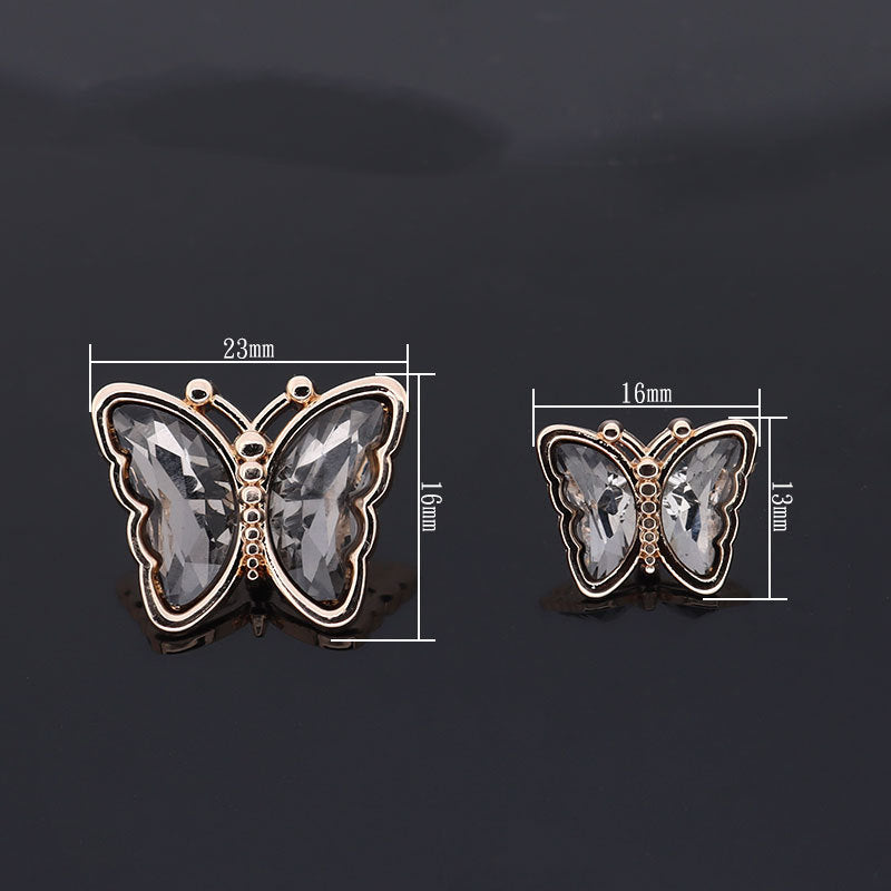 16/23mm Sommerfugleformede Farverige Metal Rhinsten Knapper med Skaft 10stk