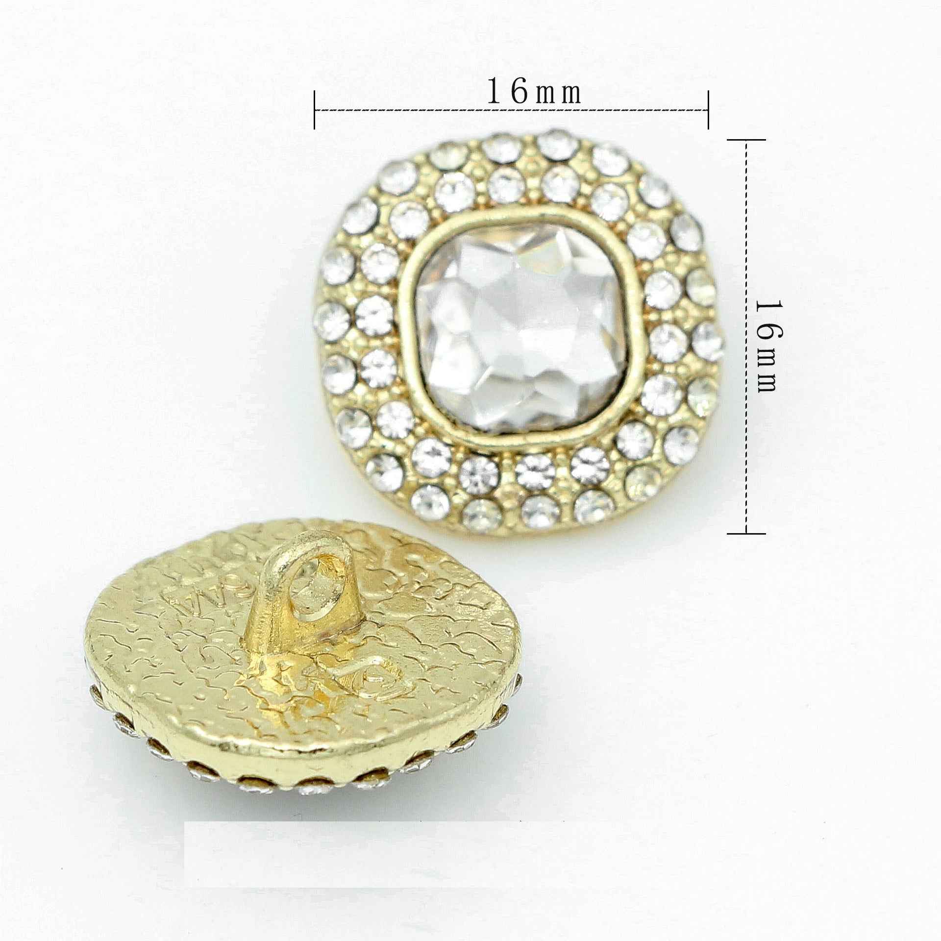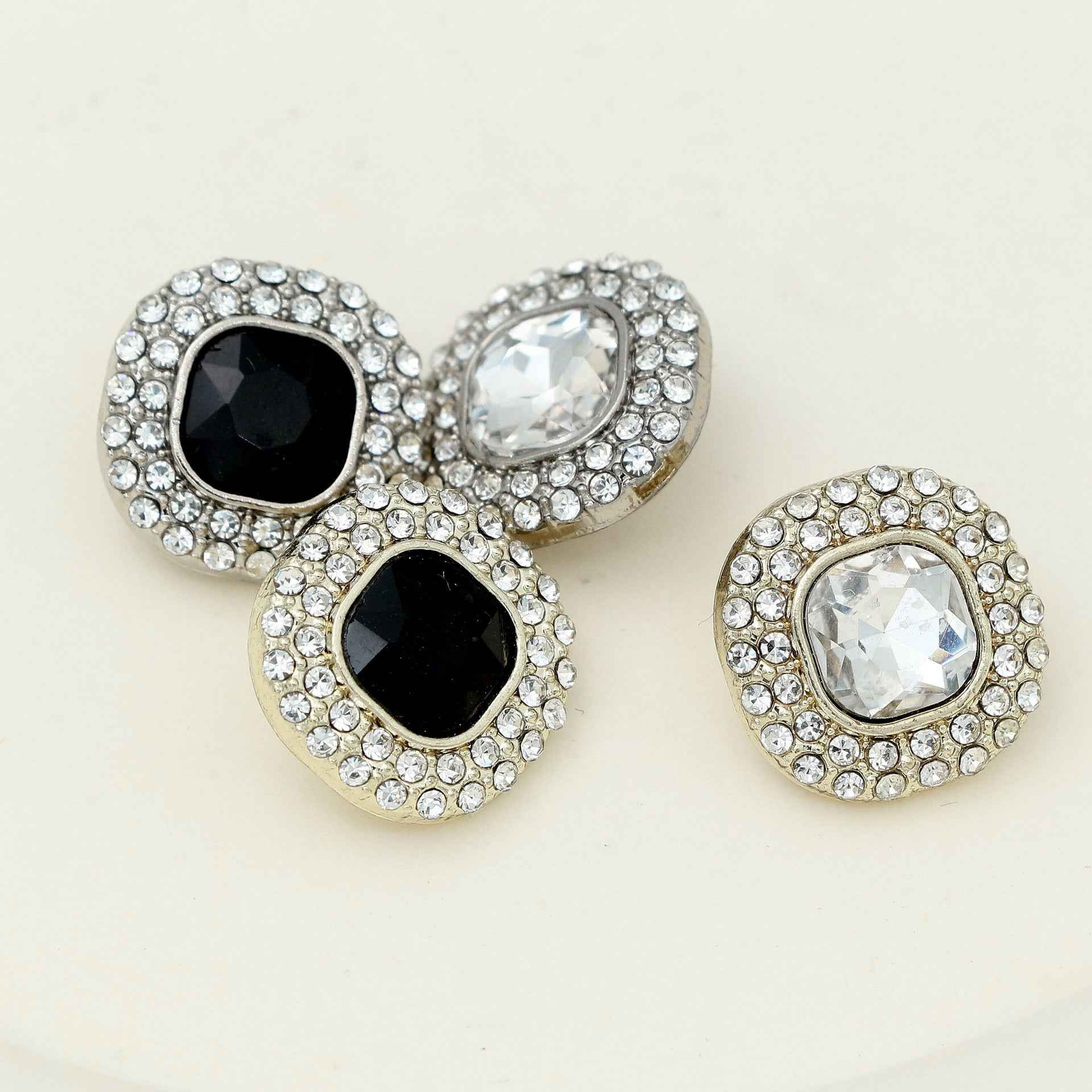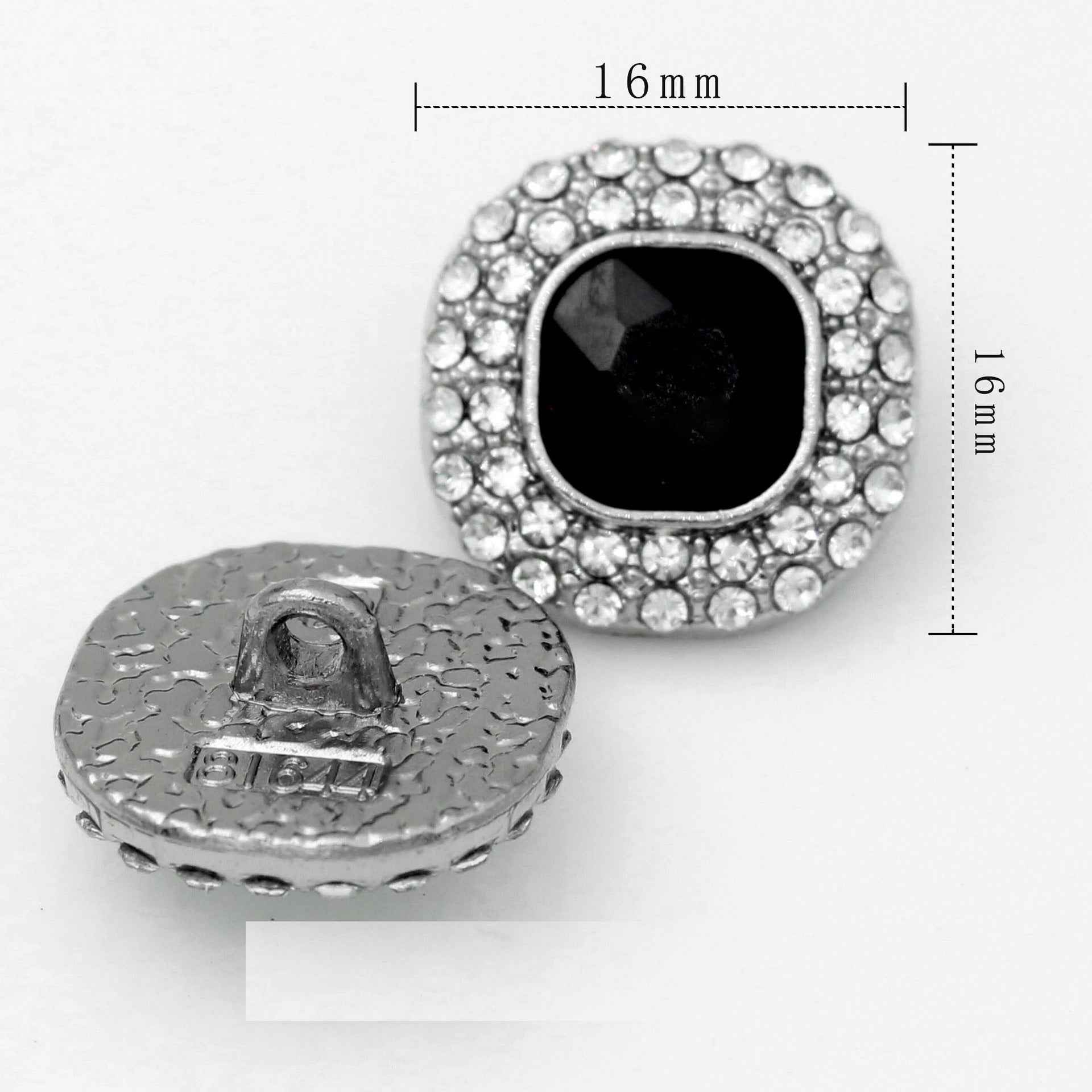 16mm firkantede glas krystal rhinsten metal skaft knapper 20 stk