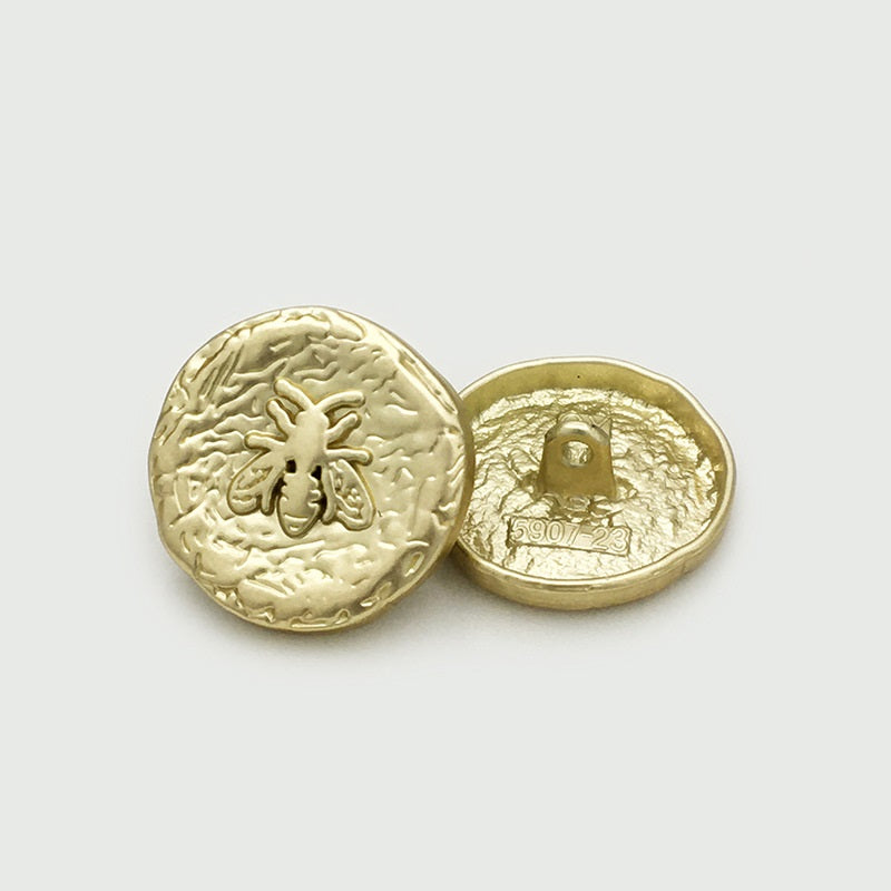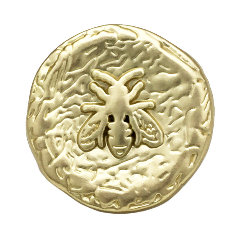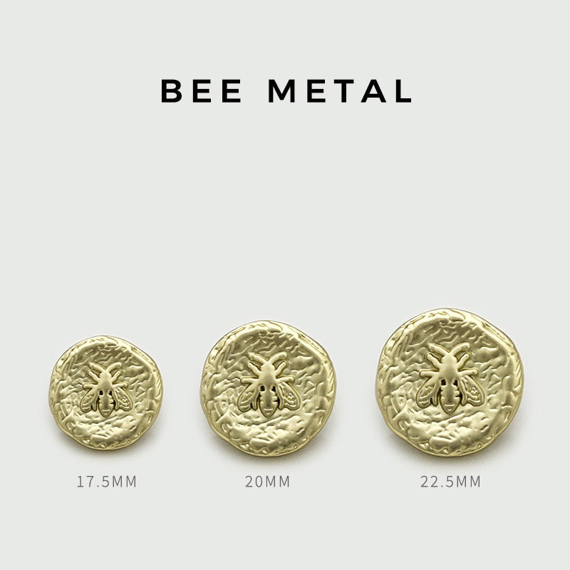 Disse fængslende knapper, i størrelserne 17,5/20/22,5 mm, er et unikt supplement til ethvert kreativt projekt. Den te-guld nuance giver en følelse af elegance og varme, der minder om antikke skatte. Deres uregelmæssige runde form med en konkav overflade tilføjer et strejf af kunstnerisk flair og dybde. Det, der virkelig får dem til at skille sig ud, er det omhyggeligt detaljerede bi-motiv. De små vinger, fine striber og markante brodder er alle levende gengivet, som om bierne er klar til at lette. Disse knapper er ikke kun funktionelle, men også dekorative, perfekte til at sy på tøj som jakker, bluser eller endda til at pynte tasker og boligindretningsgenstande, hvilket bringer et strejf af naturinspireret charme.