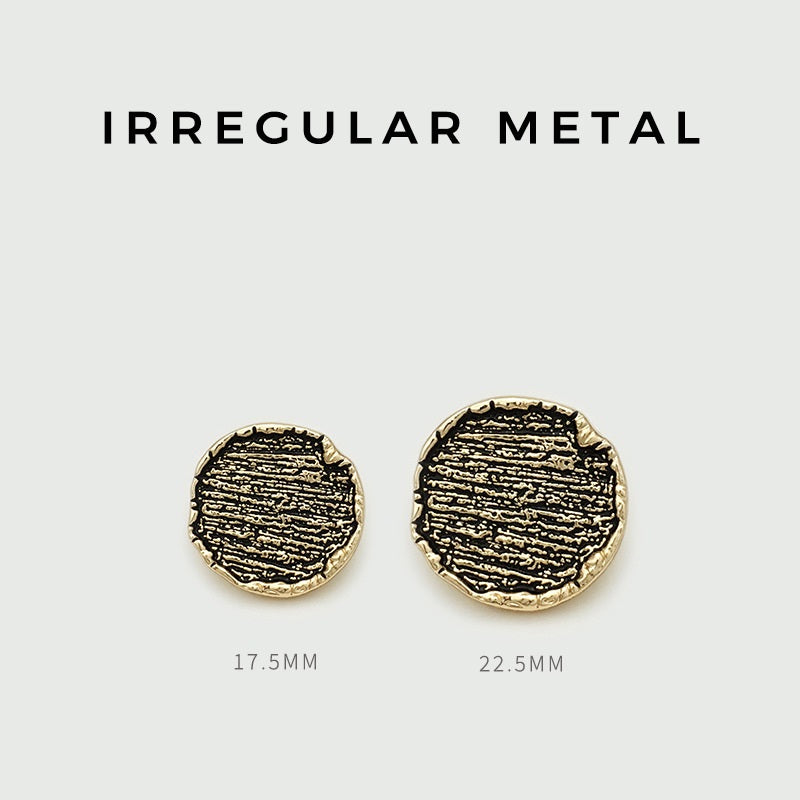 Disse 17,5/22,5 mm knapper giver en unik drejning til syverdenen. Deres uregelmæssige runde form bryder monotonien fra traditionelle knapper og tilfører en følelse af moderne kunstnerisk udtryk til ethvert beklædningsstykke. Fremstillet af metal af høj kvalitet har de en glat og poleret finish, der fanger øjet. Deres alsidige design gør, at de smelter sømløst sammen med en bred vifte af stoffer, fra silkes bløde elegance til den robuste holdbarhed af denim. Uanset om du skaber en skræddersyet aftenkjole, en trendy casual jakke eller renoverer en gammel favorit, giver disse knapper en nem måde at tilføje et strejf af individualitet. De er ikke bare lukninger, men stiludtryk, der får dine kreationer til virkelig at skille sig ud.