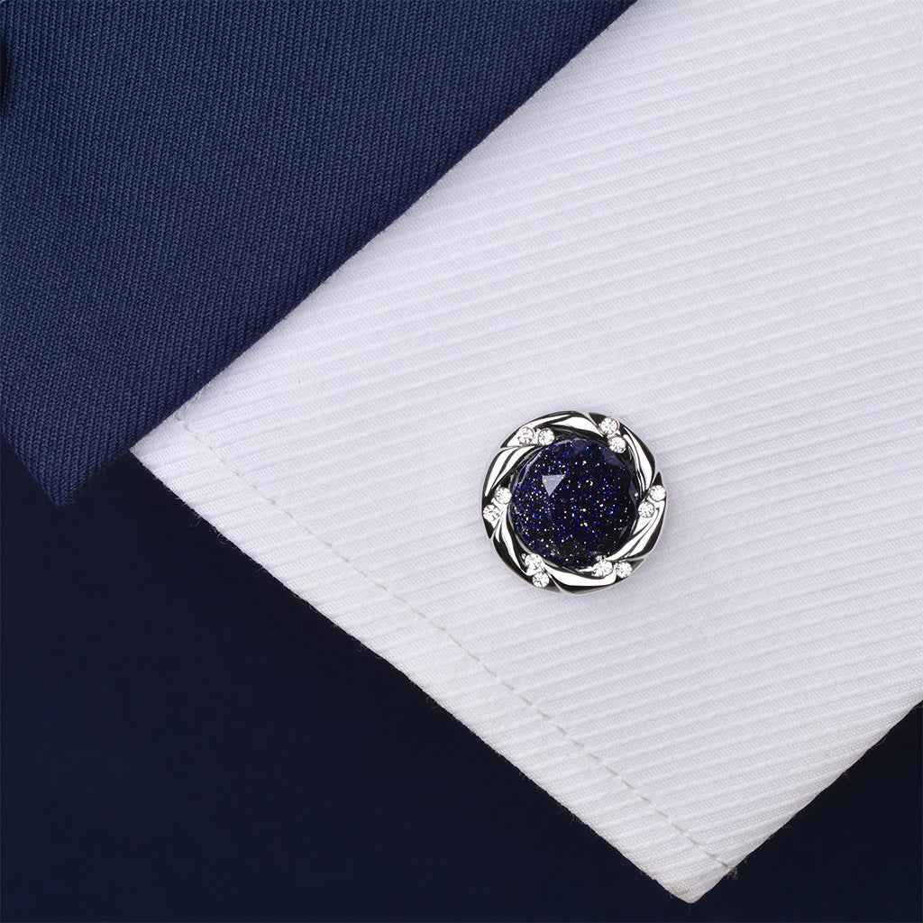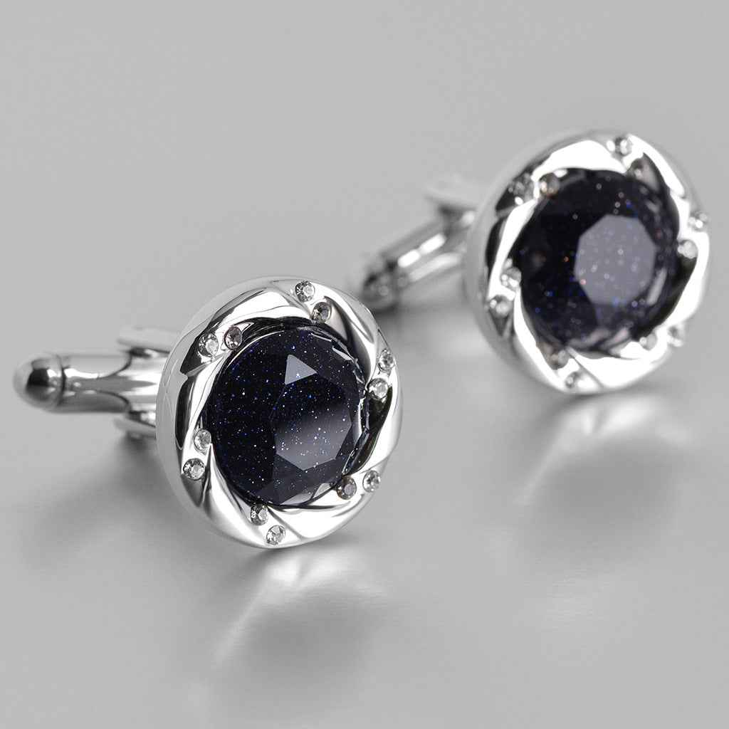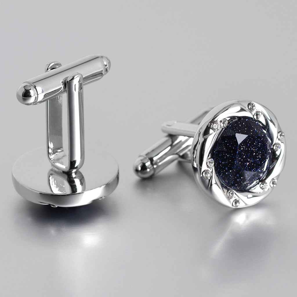 17mm sølvfarvede luksus manchetknapper med blå sandsten