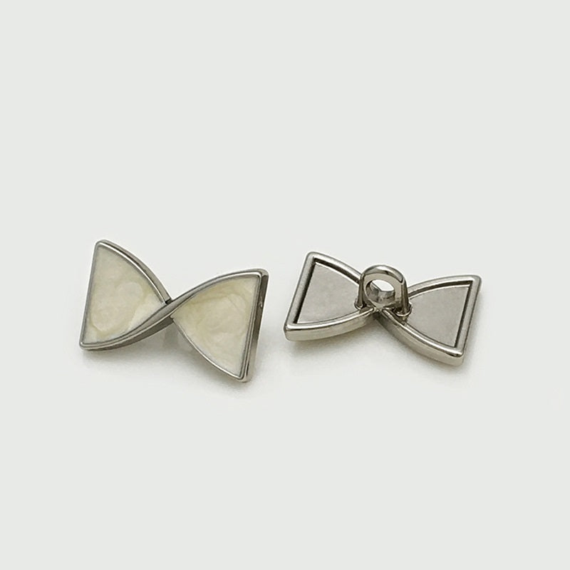 Tilføj et strejf af elegance til dine beklædningsgenstande med vores 17x10mm Sløjfe Metalknap med Håndtag. Disse knapper har et charmerende sløjfedesign, fremstillet af metal af høj kvalitet. Det påsatte håndtag gør dem nemme at sy på forskellige stoffer, perfekt til jakker, frakker og kjoler. Med deres holdbare konstruktion og iøjnefaldende design er disse knapper et ideelt valg for dem, der værdsætter traditionelt håndværk og unikke modeaccessories.