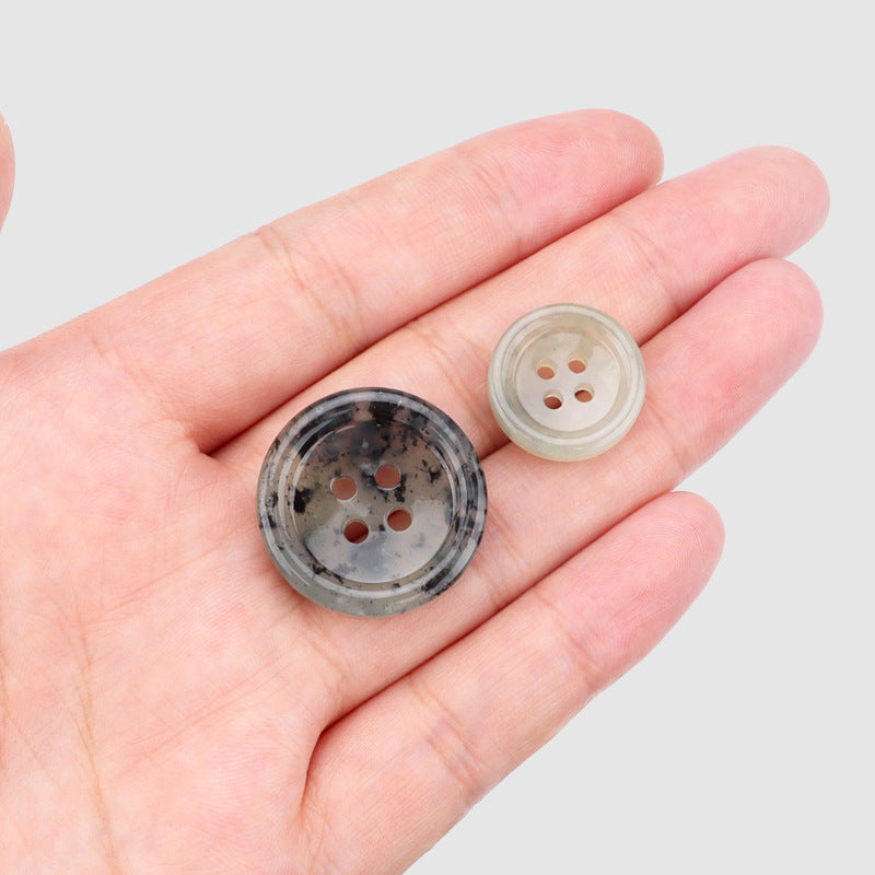 Disse 18/25mm knapper er lavet af naturlig Xiuyan blomsterjade. Den runde form og fire-huls design tilbyder både funktionalitet og en klassisk æstetik. De unikke mønstre og farver i blomsterjaden ligner smukke naturlandskaber og tilføjer et strejf af kunstnerisk udtryk.