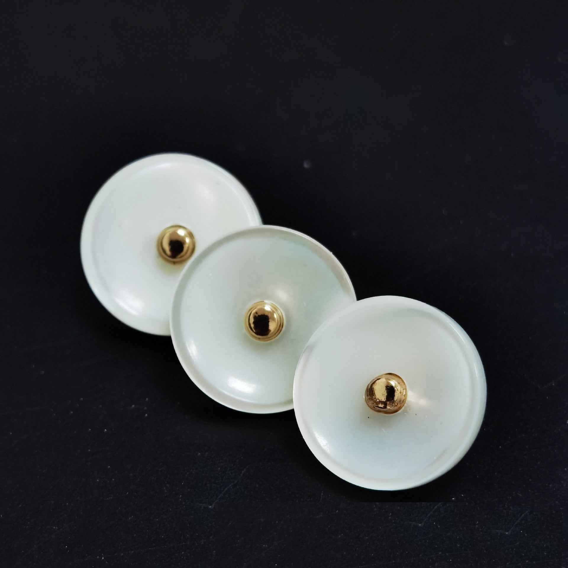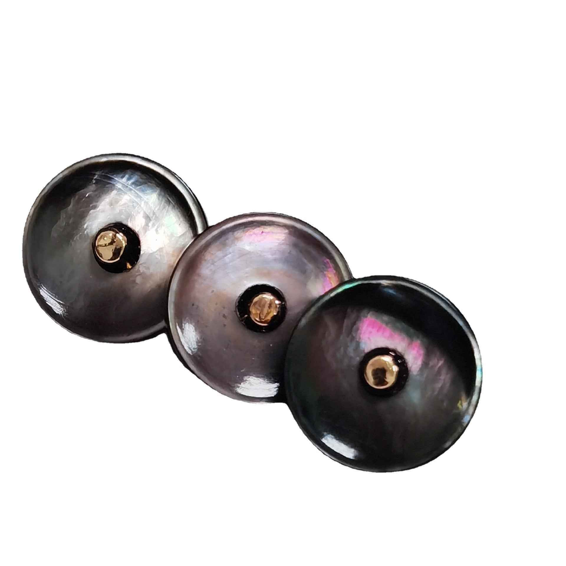 18L sorte elfenbensperlemorsknapper med metalstilk, 100 stk.
