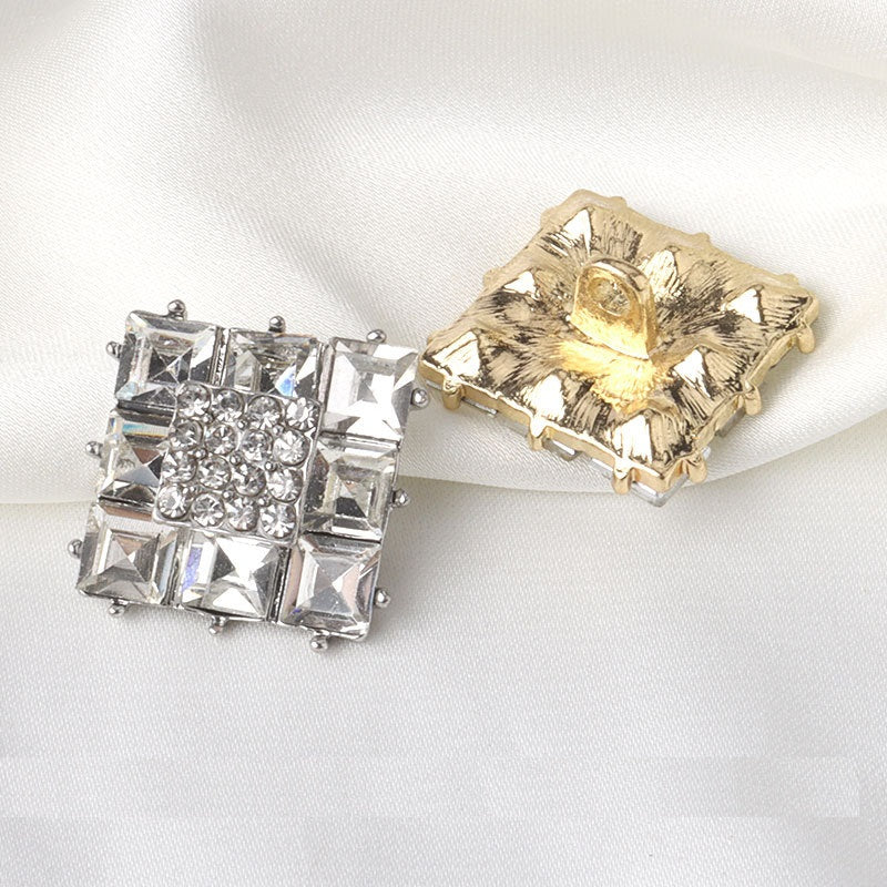 18mm gyldne sølv firkantede rhinsten metal knapper til kvinders overtøjsdekoration 2 stk