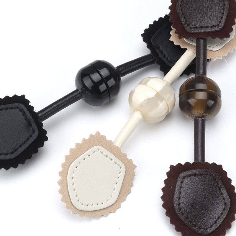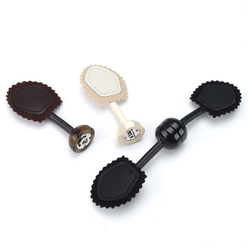 190mm beige, sort og mørkebrun læderspænder med harpiks trykknapper - Frakke- og vindjakke spænder 6 stk