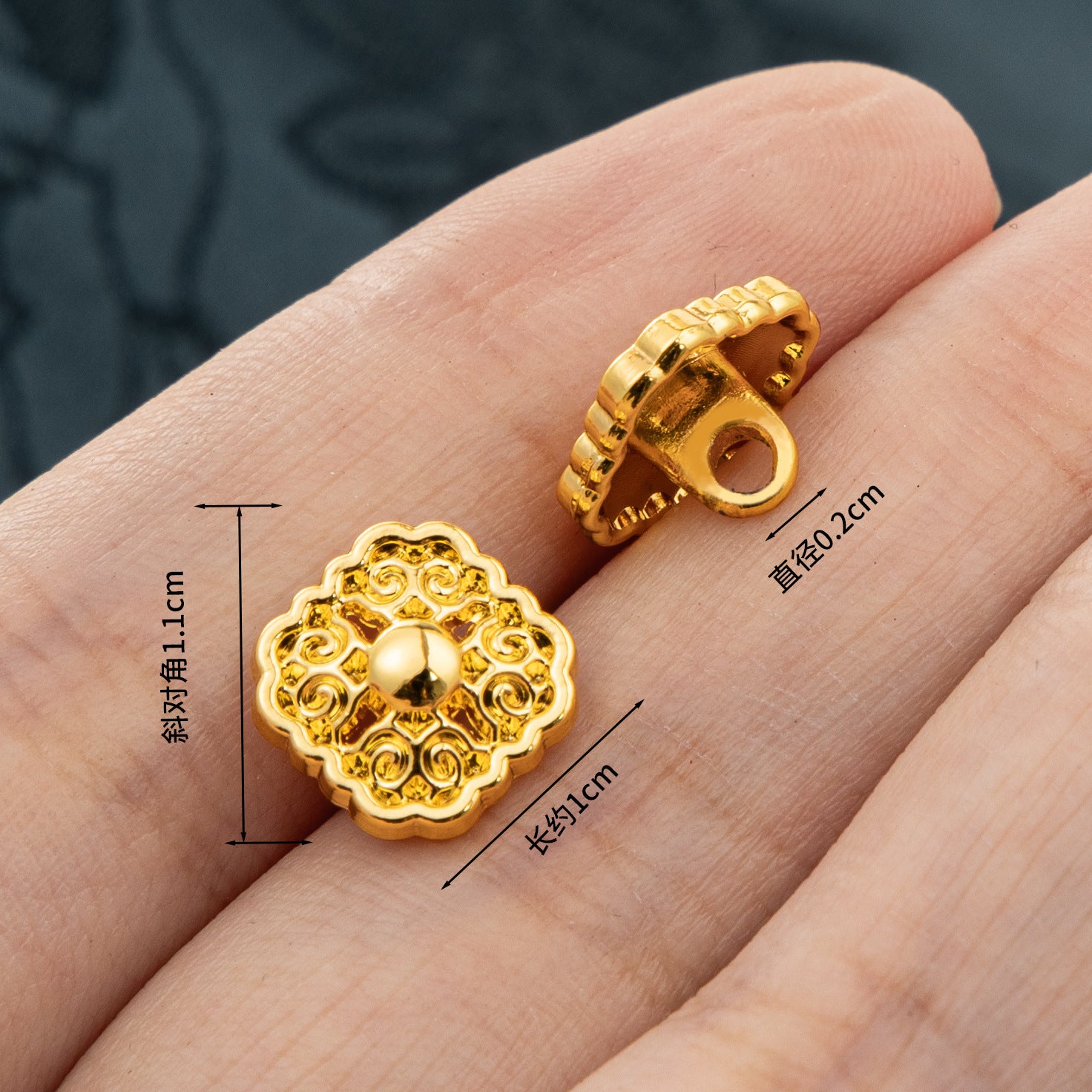 1cm kinesisk stil vintage gyldne firkantede metalknapper med løkke 30 stk