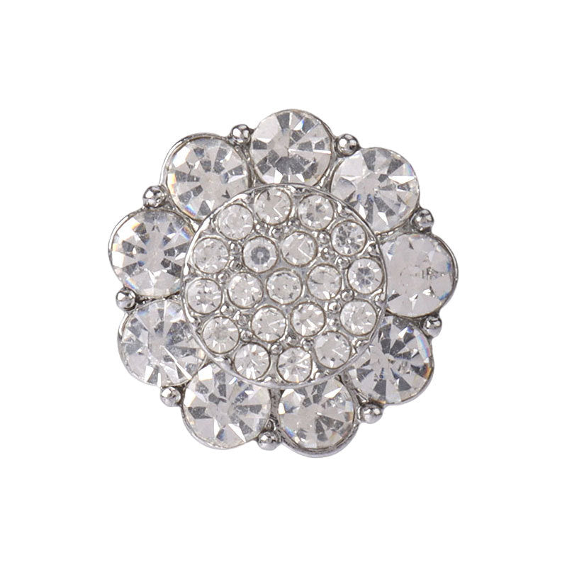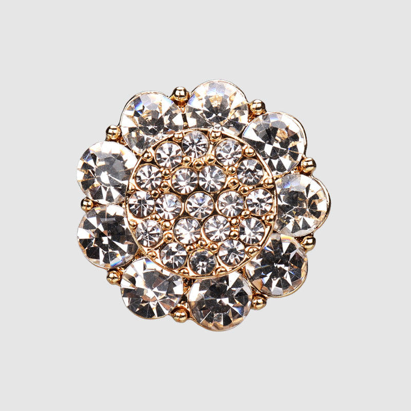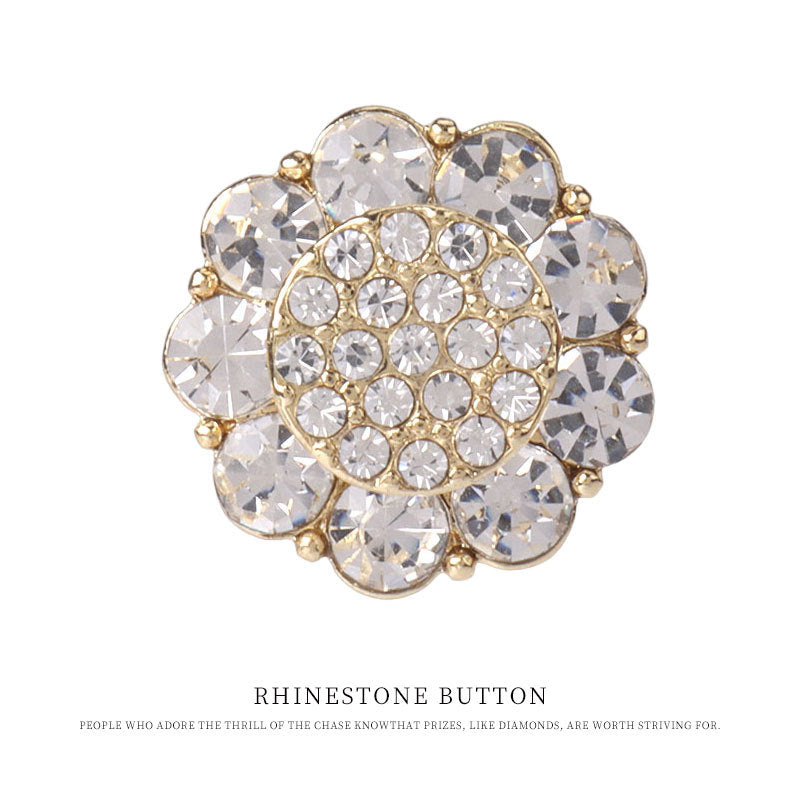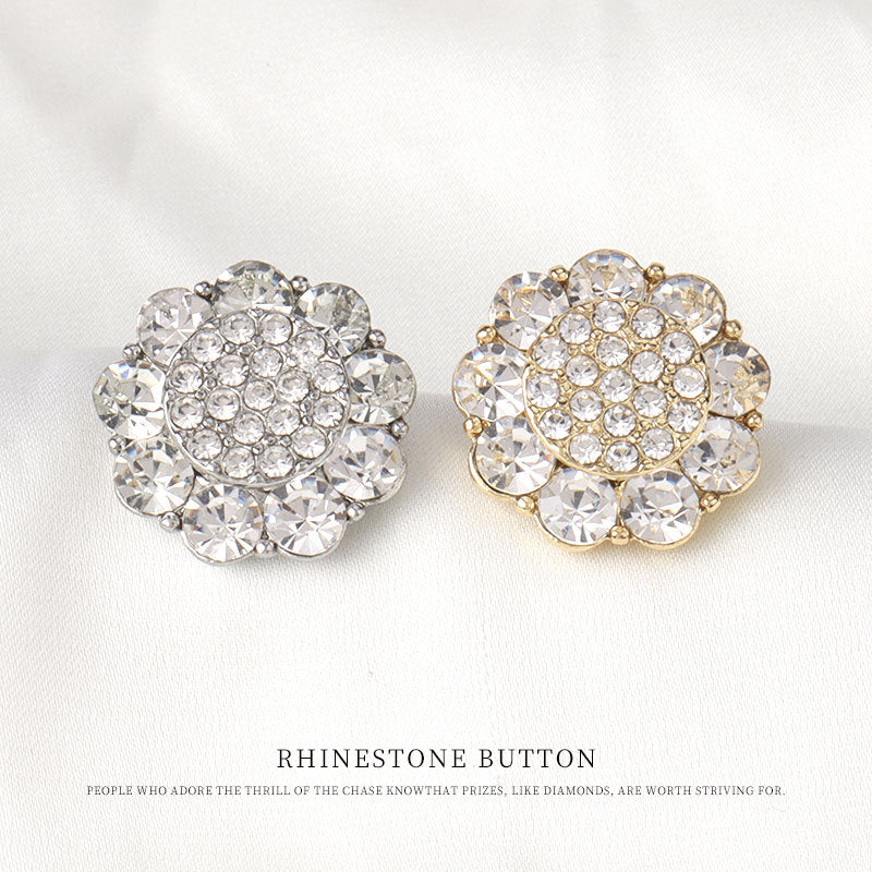20mm blomsterformede gyldne sølvskinnende rhinsten syknapper med metalstilk 4 stk