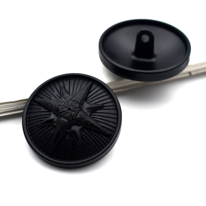 22mm sorte runde Beetle Crown og Star mønstrede metal skaft knapper 20 stk