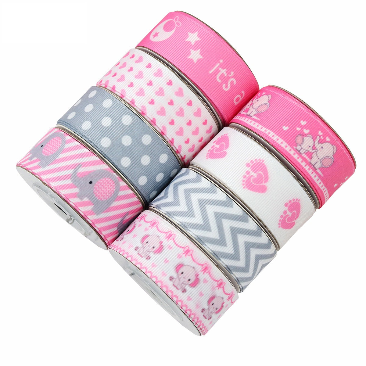 22mm lyserød piges fødselsdagsfest bånd 8 farver pakke