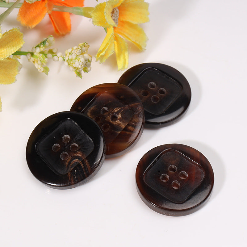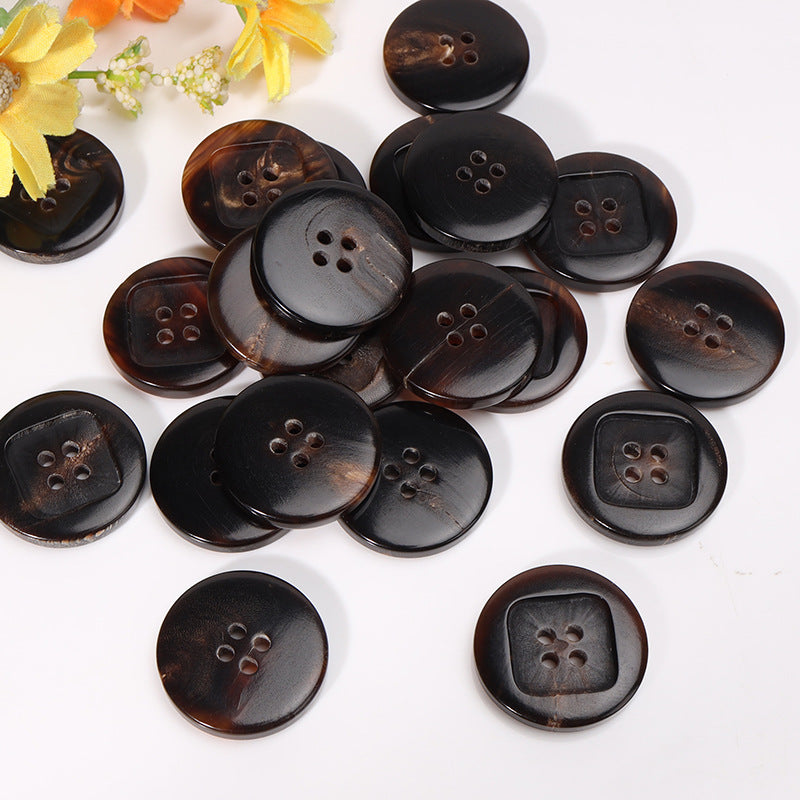 23mm kaffe-farvede firkantede hornknapper med fire huller
