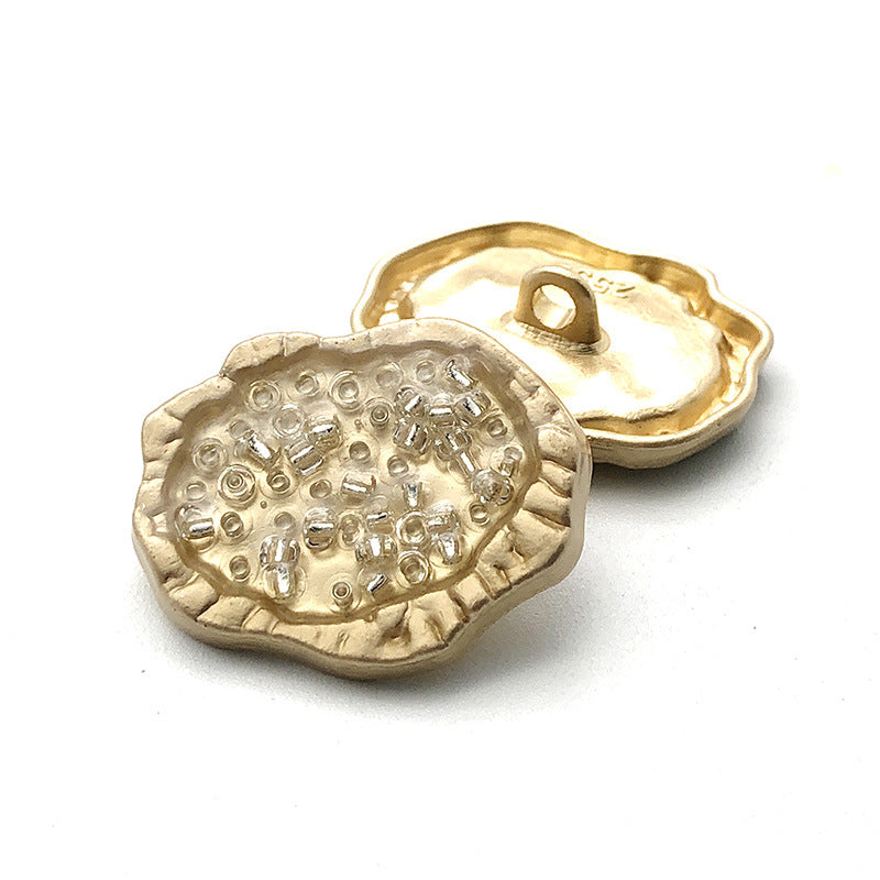 Omfavn skønheden i ufuldkommenhed med disse 25mm Uregelmæssige Ovale Perlebesatte Metal Skaft Knapper. Hver knap er et unikt mesterværk, med en uregelmæssig oval form prydet med fine perler, der fanger essensen af naturens kunst.